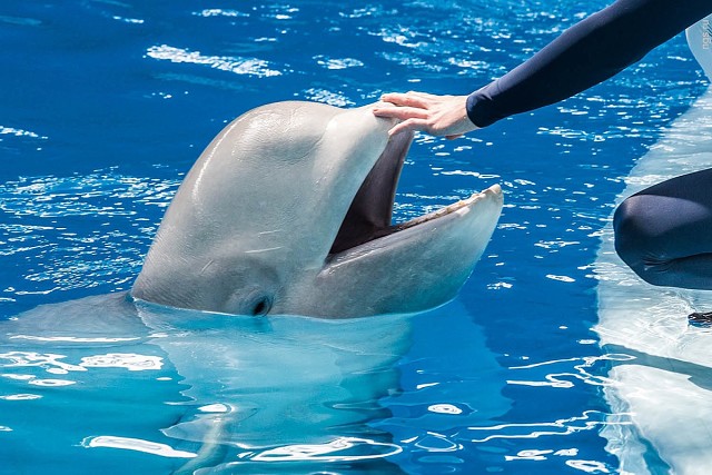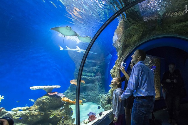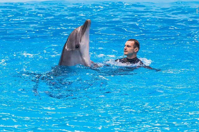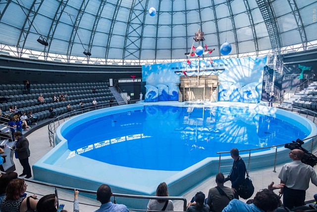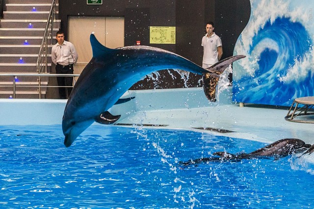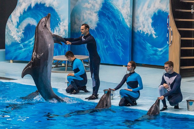 02.08.2016 В Новосибирске открылись первый в Сибири дельфинарий и океанариум — с подводным тоннелем, тремя сотнями видов рыб, морскими котиками, белухами и четырьмя дельфинами Новосибирский дельфинарий окончательно достроили: 2 августа все желающие смогут купить билет и увидеть морских животных своими глазами. О том, что в Новосибирске может быть дельфинарий, заговорили несколько лет назад, однако строительство периодически тормозилось — в том числе из-за протестов экологов и недовольства зоозащитников. Весной в Новосибирск привезли морских животных, которые теперь почти каждый день будут давать представления для зрителей. Корреспонденты НГС.НОВОСТИ уже увидели программу с участием дельфинов и морских котиков, погрузились в атмосферу океанариума с акулами и скатами, а также выяснили, в каких условиях содержатся животные и сколько будет стоить входной билет в дельфинарий. 2 августа открывается Центр океанографии и морской биологии «Дельфиния» (так решили официально называть новосибирский дельфинарий на территории Новосибирского зоопарка). О том, что в Новосибирске могут построить дельфинарий, разговоры пошли еще несколько лет назад. Эту мысль озвучил в 2006 году директор зоопарка Ростислав Шило. Однако строительство растянулось на несколько лет, процесс периодически сопровождался протестами экологов, которые пытались уберечь участок дендрария, отданный под строительство. Сама идея дельфинария возмущала зоозащитников, которые выступали против насилия над морскими животными в угоду человеческим развлечениям. Тем не менее директор зоопарка Ростислав Шило сумел тогда найти инвестора, компанию «Белая сфера», которая взялась за строительство, вложив в проект около 400 млн руб. Сроки открытия дельфинария с 2011 года переносились ежегодно по нескольку раз. В итоге на территории 8,5 га (с правой стороны от центрального входа в зоопарк) все-таки построили здание дельфинария с 40-метровым куполом. Первое, что видит посетитель при входе, — огромные черные ворота с золотыми дельфинами, пропускной пункт и много бдительных охранников с рацией. Кстати, декор в виде хвостов дельфинов здесь повсюду — ими украшены зал для представлений, коридоры. В сувенирной лавке (на первом этаже) продают кулоны в виде дельфинов и даже наушники в виде маленьких голубых дельфинчиков. Кассы центра — отдельное, правда небольшое, здание. Внутри несколько операторов, которые показывают на табло (прямо как в кинотеатре) места в зале и цены. Рядом стоит несколько терминалов, в которых можно распечатать билеты, купленные через интернет. У корреспондентов НГС.НОВОСТИ не возникло нареканий к такой организации, но остался один вопрос — как же будут выстраиваться потоки очередей посетителей к каждому оператору в этом замкнутом пространстве. Слева от входа в дельфинарий стоит сцена (пока непонятно зачем). Вход в дельфинарий похож на чистый, зеркальный аэропорт где-нибудь в цивилизованном городе. Об этом напоминают табло, указывающие, где находятся, например, секторы А, B, C. Есть таблички, показывающие путь к туалетам (кстати, сами туалеты — сверкающие, с большим количеством посадочных мест), а также подробная карта, чтобы не заблудиться. На первом этаже закусочная и стойка с попкорном. Затемненный лифт с синими неоновыми полосками настраивает на океан. Впечатления