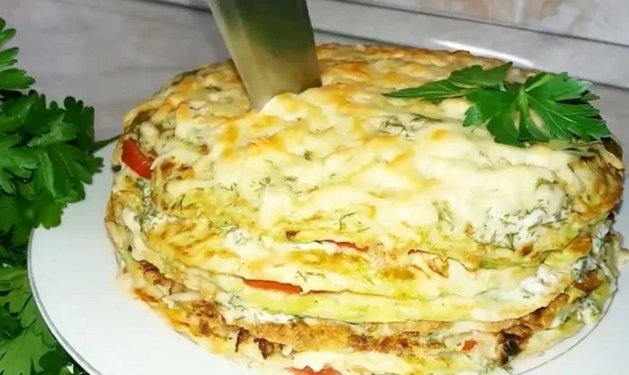 Кабачковый торт с помидорами и сыром