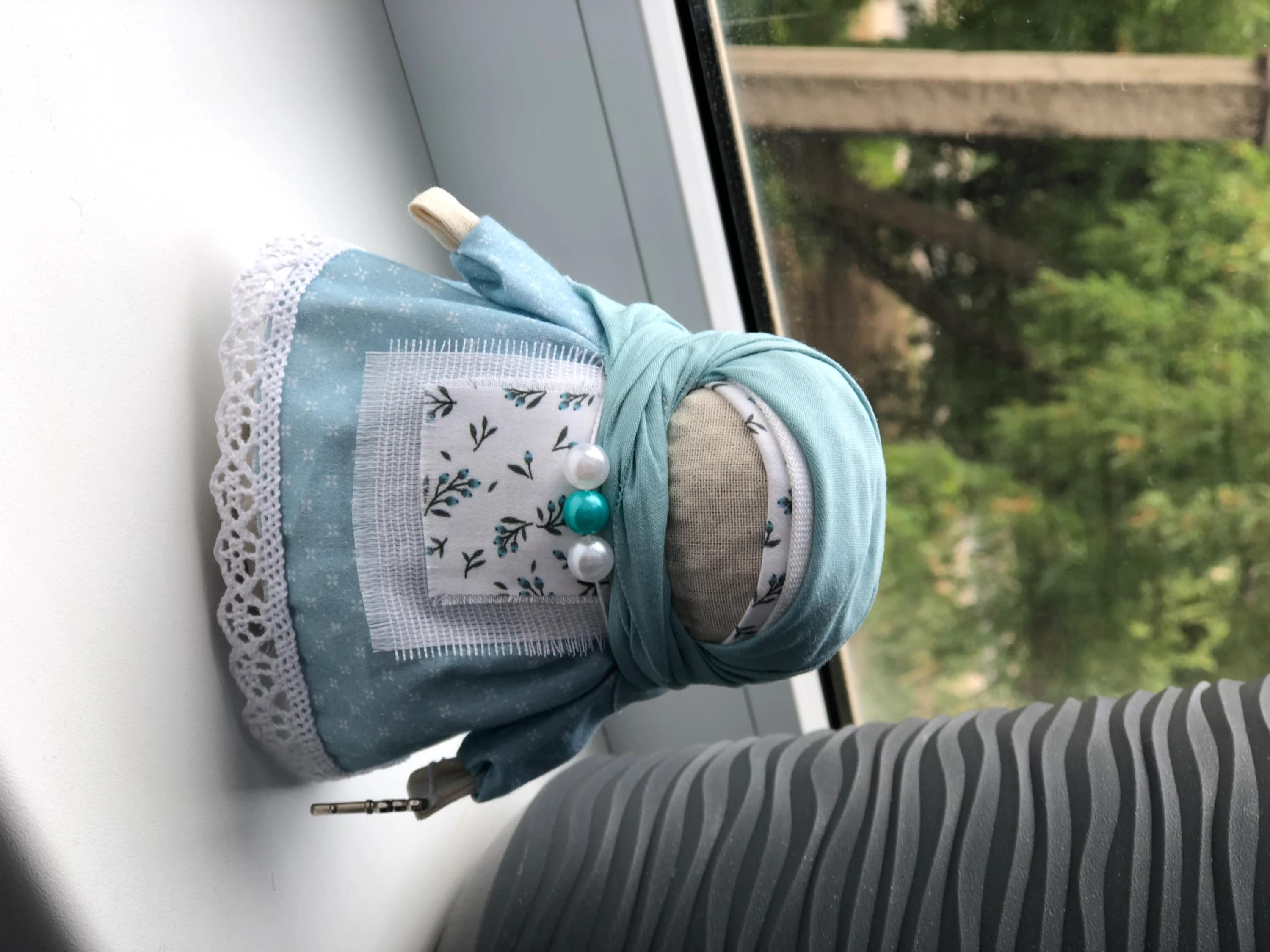 Делаю, мешочек из пшеницы или гороха, а одежду привязываю