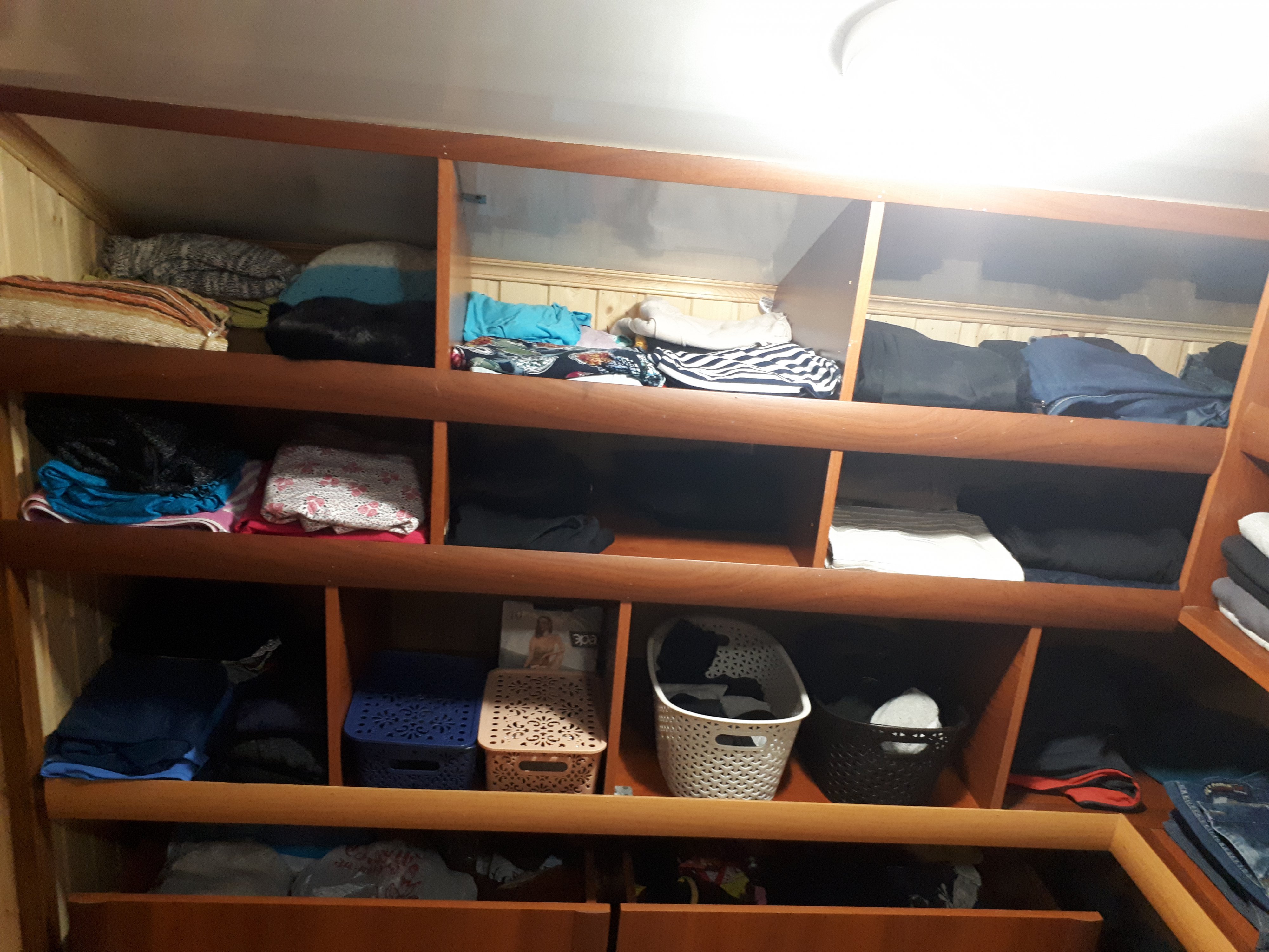 Разобрала полочки в шкафу в спальне.