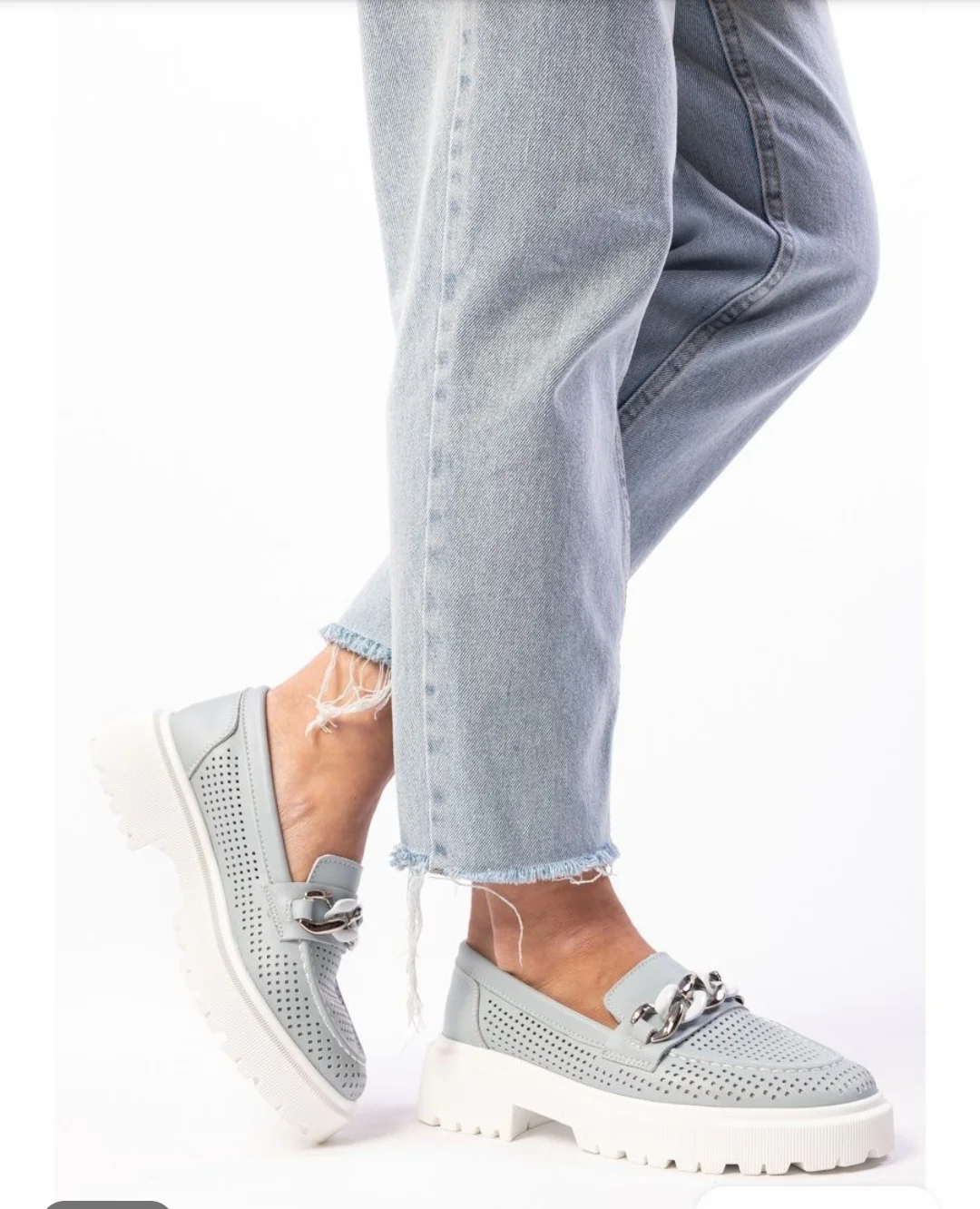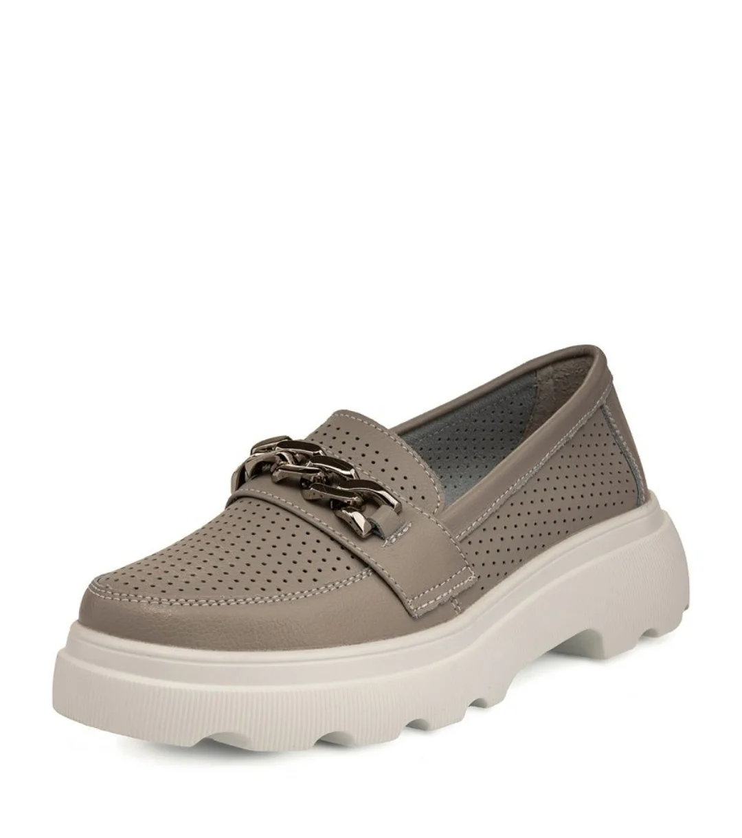 Летние женские лоферы кожаные туфли на тракторной подошве ZENDEN