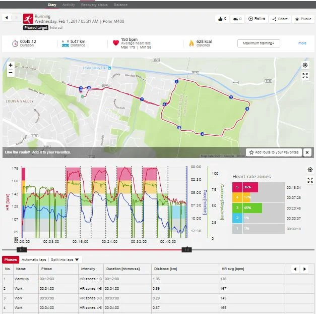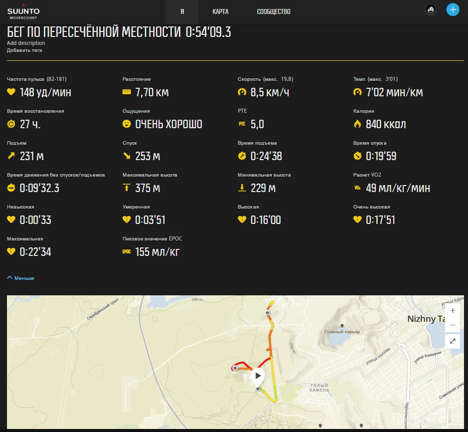 Для сравнения прикладываю скрин отчета из программы от Suunto (Movescount). Естественно, он весь не влез, но необходимое присутствует.