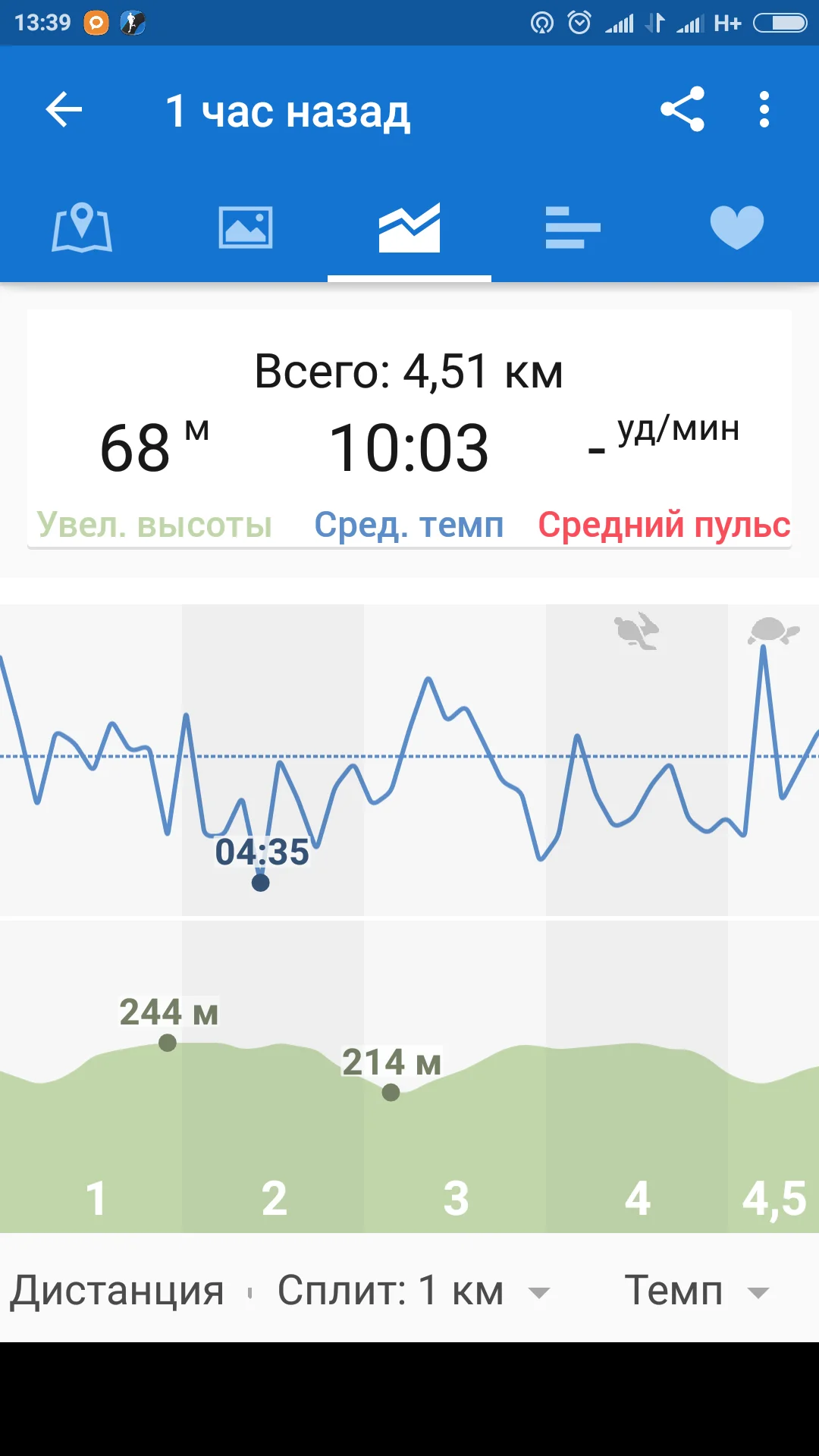 Средняя скорость - 13,3 км/ч (4:30/км)