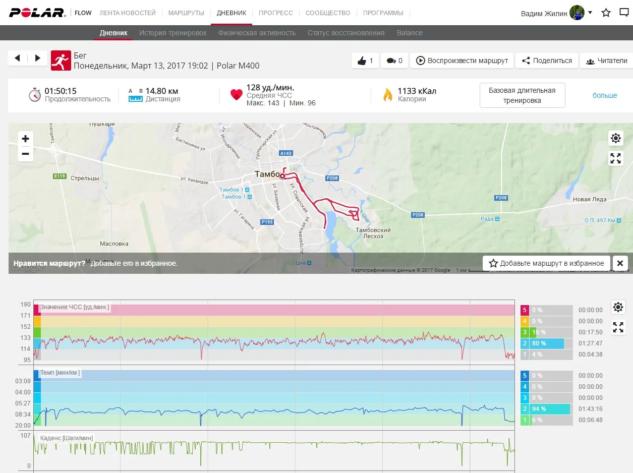 Отчет от 13.03.2017 г бег 14,8 км