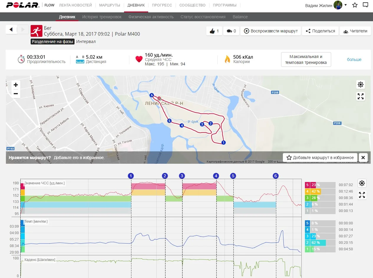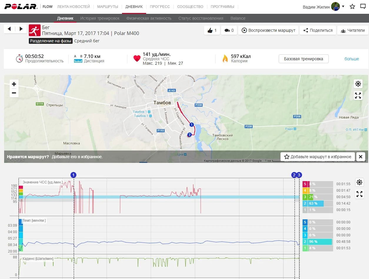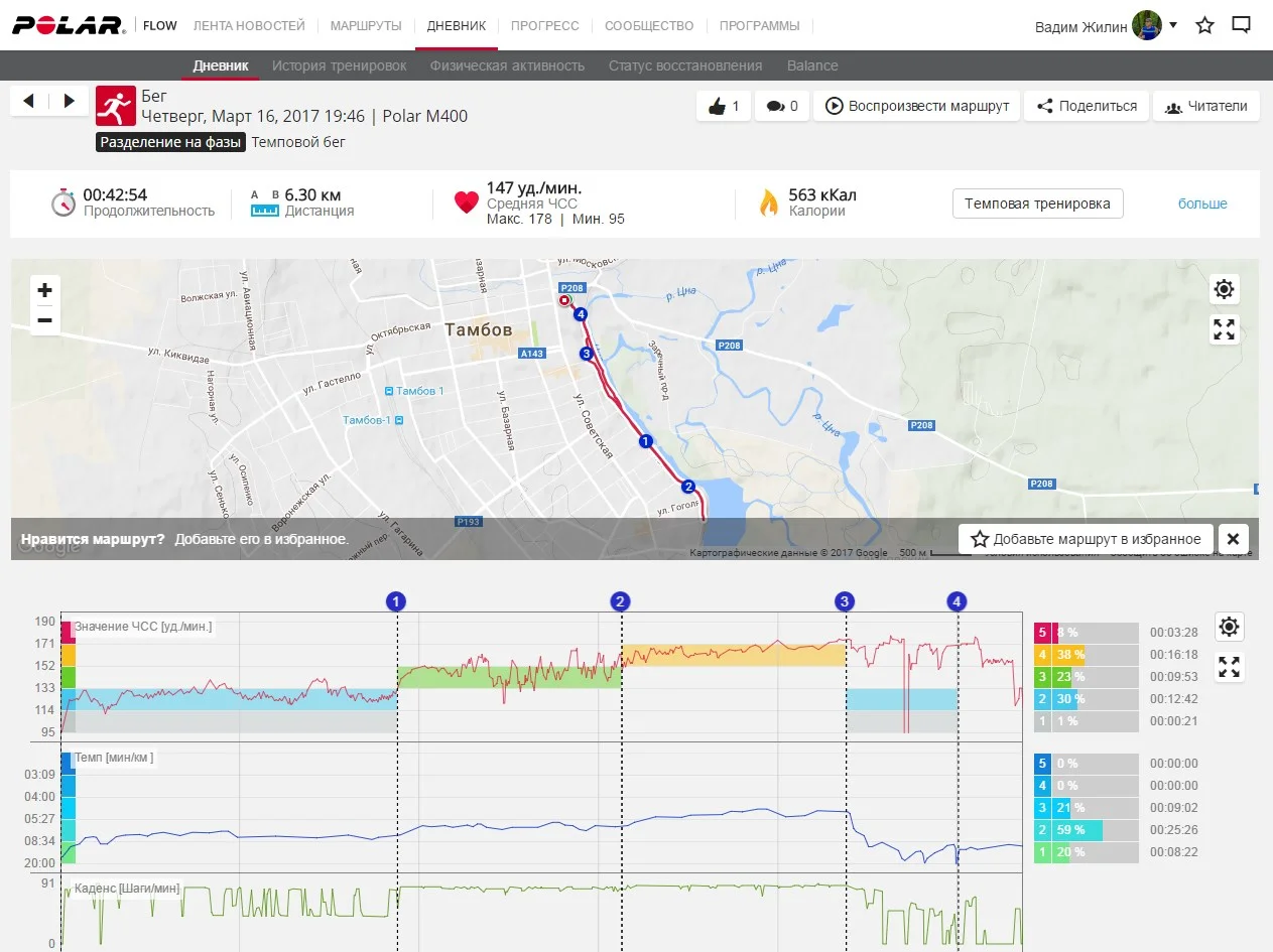 Отчет от 16.03.2017 г бег 6,3 км