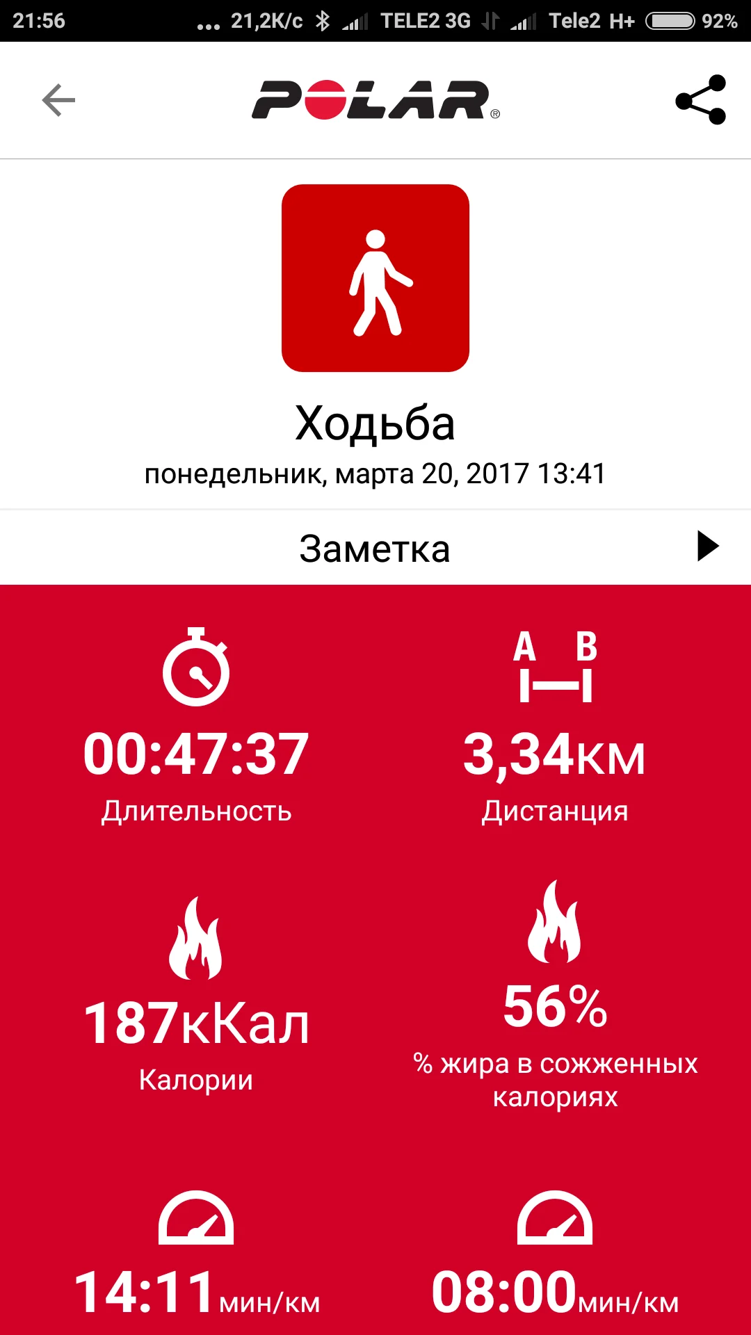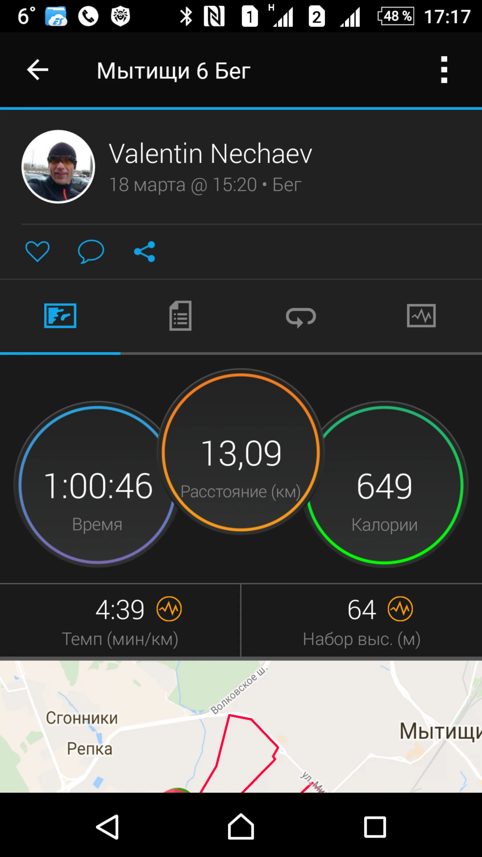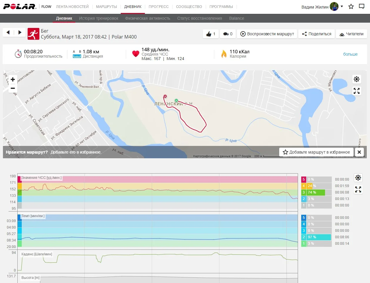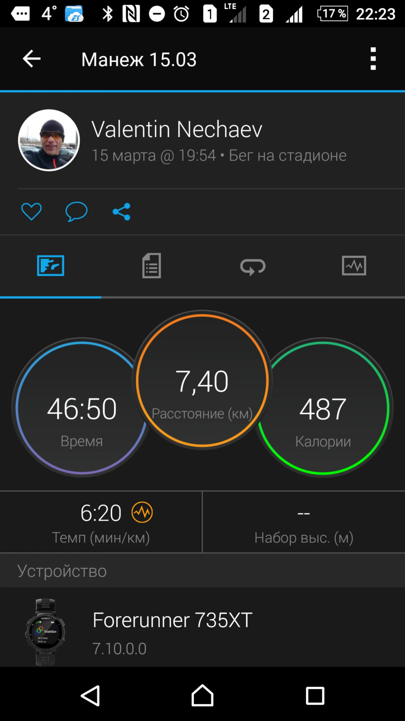 отчет от 17.03.2017 бег 7,1 км