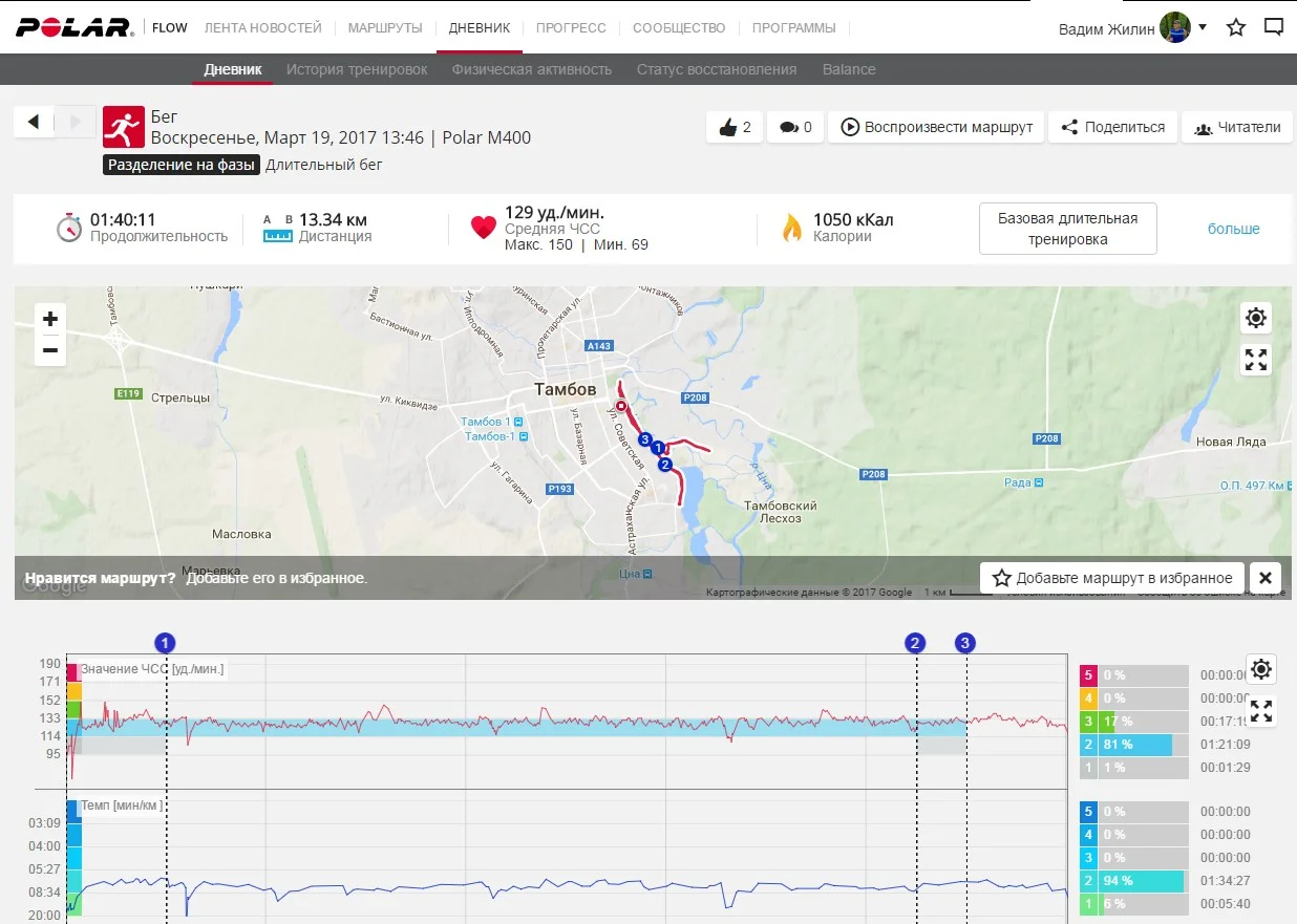 отчет от 19.03.2017 бег 13,34 км