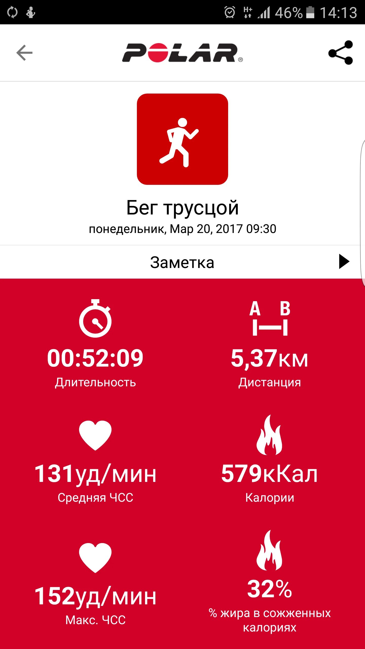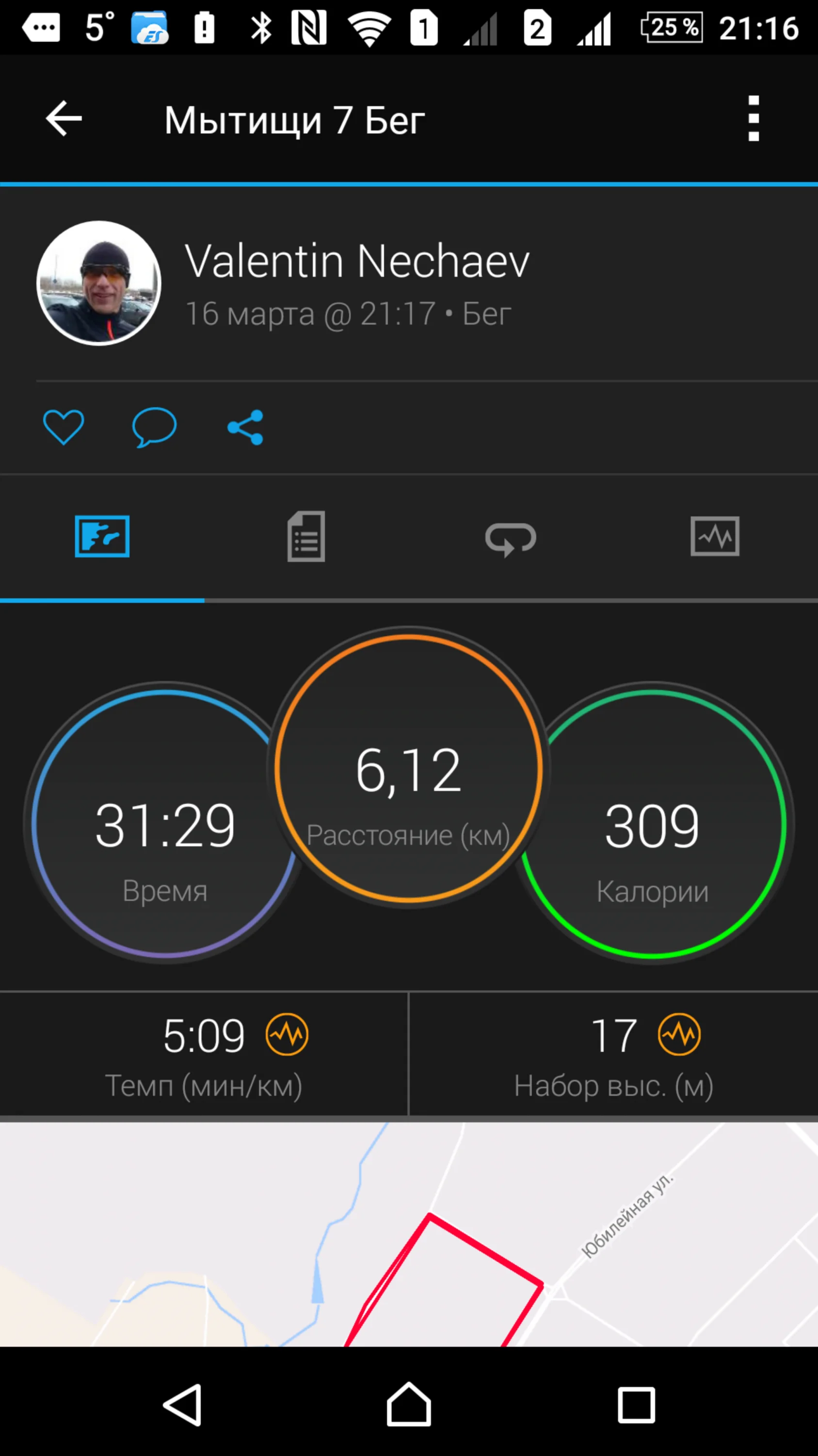 отчет 18.03.2017 бег 6,1 км