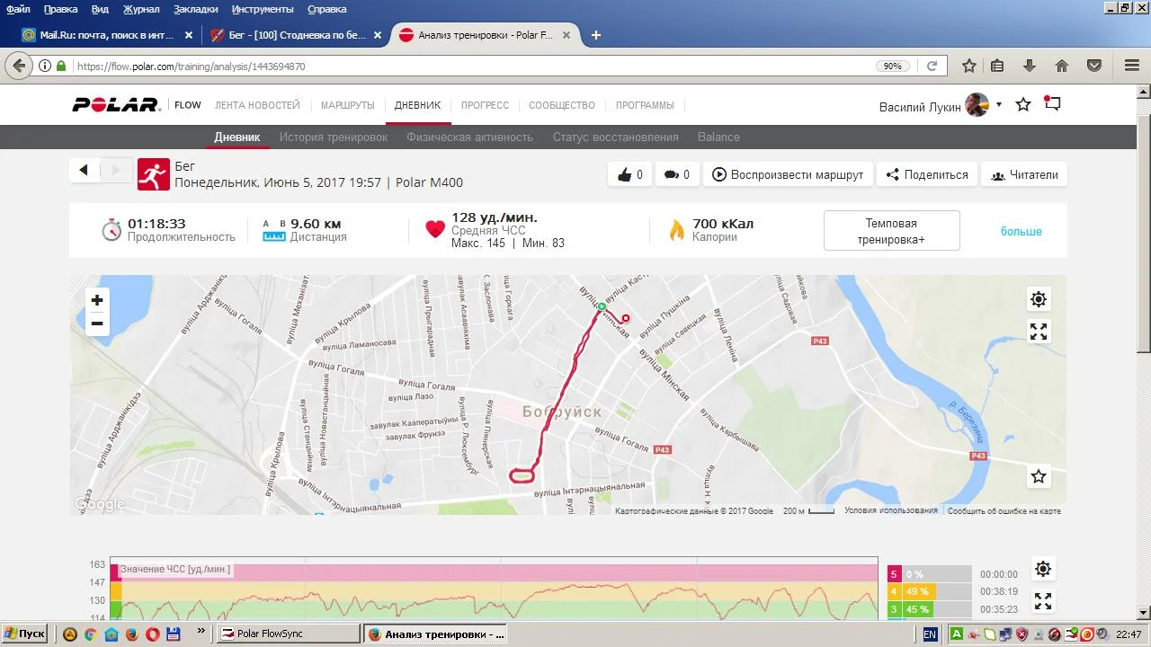 03.06.2017 бег примерно 6 км, примерно 40 мин