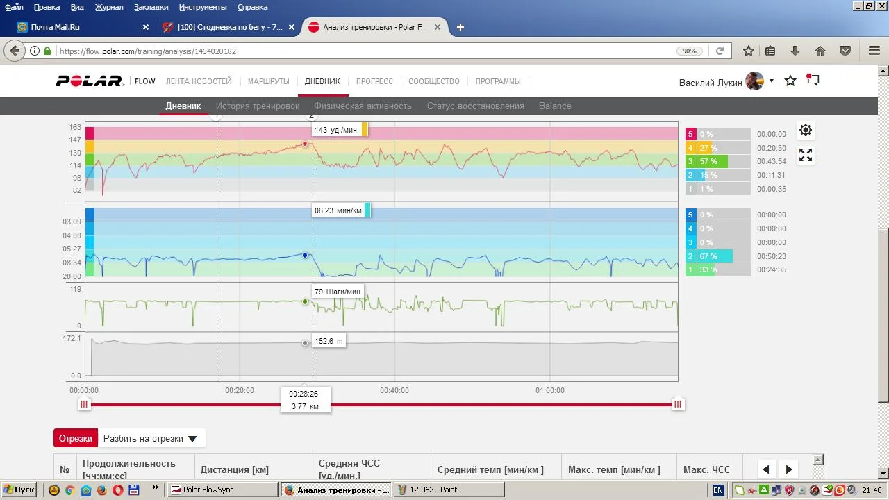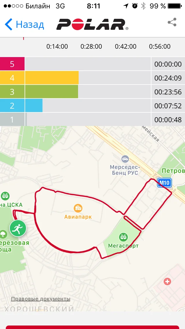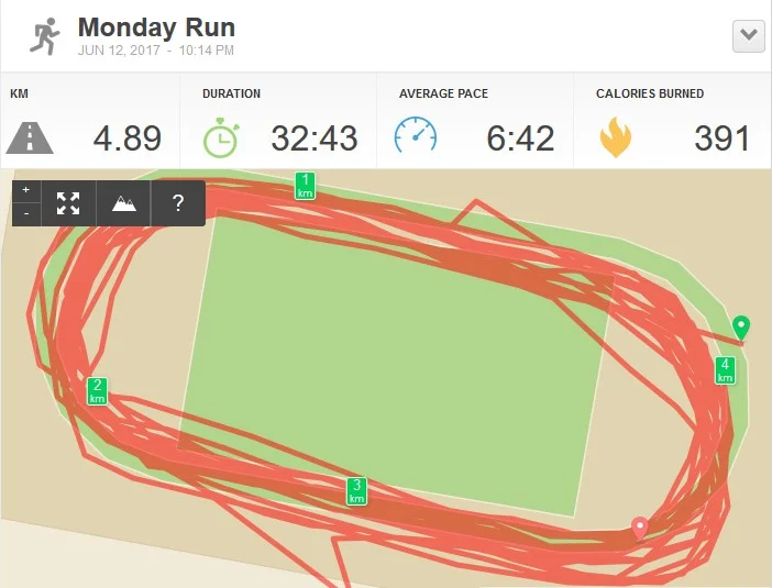 Фигура не дорисована, где то еще 600 метров потерял :) Завтра попробуем ее два раза обвести. Под конец на подъемах сбивается дыхание, надо там побольше сейчас практиковаться. Возвращаться на асфальт нет желания, хотя по км. там выходило намного больше.