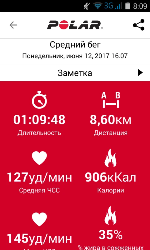 8.74 км. Бег.