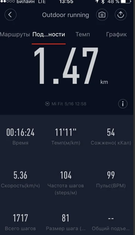 Доброе утро всем. Отчет 18.05. ходьба с подбегиванием. Фото делать не могу, программа отказывается работать в фоновом режиме.