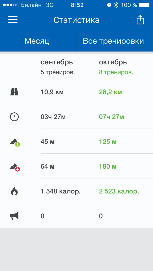 1 С тренировками все более-менее нормально. Цель была 5 тренировок в неделю и я ее выполняю. Вот только думаю, может поинтенсивнее делать. Вместо ходьбы 5 км - аэробика. Что хоть результат был. А то вес на месте стоит.