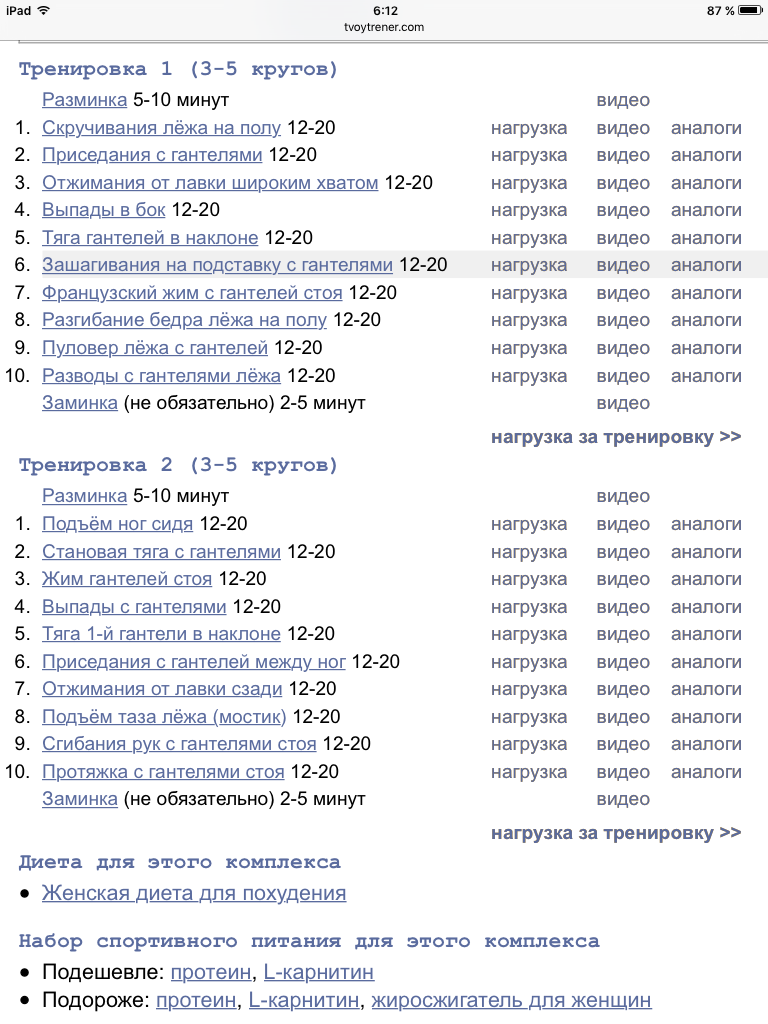 Тренировки. Силовые тренировки и интервальное кардио на дорожкев тренажерном зале. 3 раза в неделю.