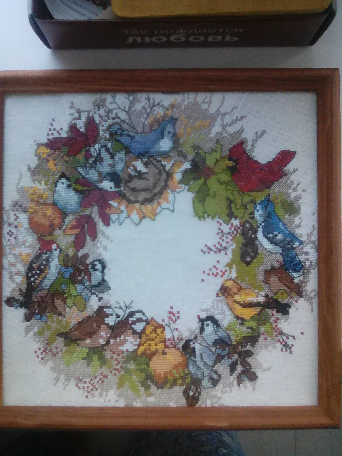 Рождественский венок в подарок. В багетную уже не успела. Что-то зашиваюсь по времени в этом году. Всё не успеваю!