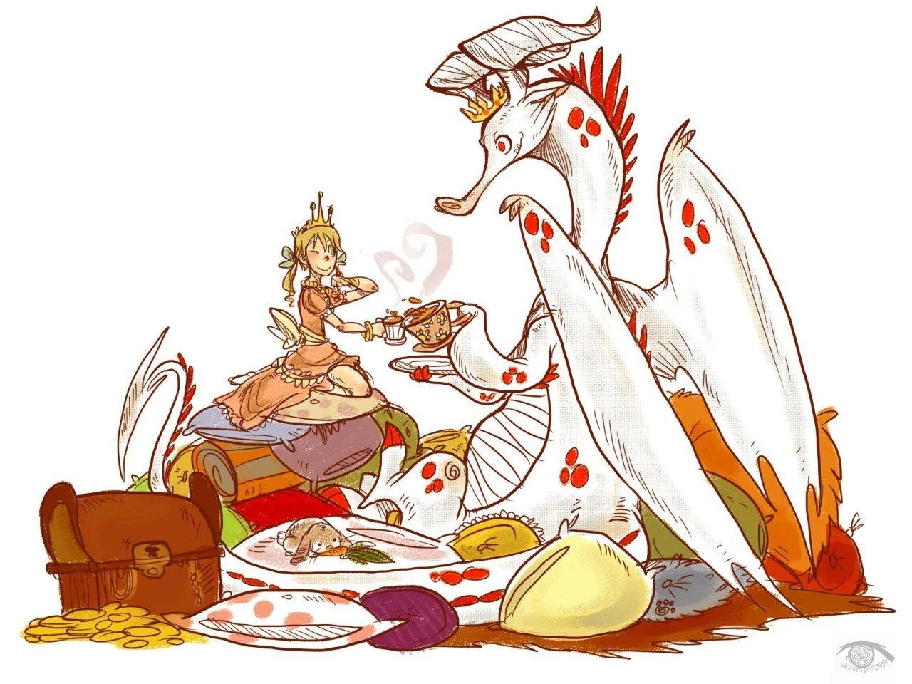— Принцы? Принцы имеют ужасное свойство опаздывать. Понимаешь, пока Принцесса ждет Принца, всё свободное время она проводит с Драконом. Ну, и влюбляется потихоньку. Сначала вроде просто болтать начинает, как бы от скуки, мол, с кем еще в пещере и в плену поговоришь, а потом и увлекается – Драконы ведь потрясающие собеседники – начинает дружить. Дружит, дружит, дружит – и вдруг не может без своего дракона жить. То есть вообще.