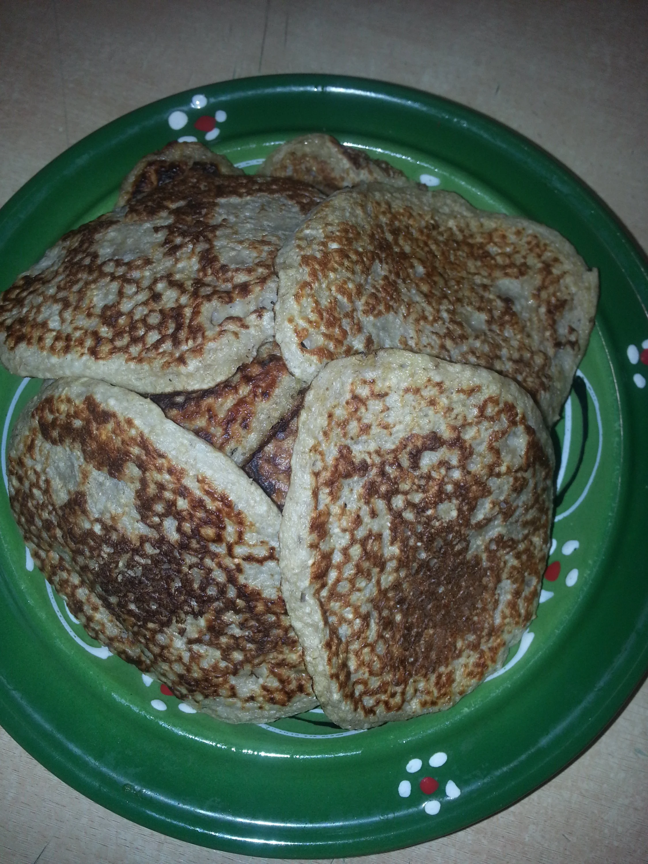 1ст овсянки, 1ст обезжиренного кефира, 1 банан(можно и без него), 1 яйцо, 0,5 ч.л.соды. Овсянку залить кефиром, дать разбухнуть 1-2часа,либо в блендере перетереть в муку, тогда ждать не надо. Туда же яйцо,соду,всё перемешать, ложкой выкладывать блинчики на разогретую сковородку(тонким слоем,чтобы пропеклись).Жарю без масла, но можно в начале смазать сковородку чуть-чуть раст.маслом. Подавать со сметаной или кефир обезжиренный с обезж. творогом взбить до консистенции сметанки. Я ем с мёдом))