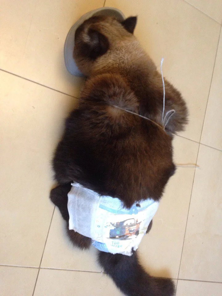 Действительно красаваЯ с радостью! А у меня сегодня веселое утро было. Мой любимчик Цезарь заболел - так с утра нам наркоз сделали и катетор поставили. Я купила трусики-памперс на 10 кг а они оказались малы нам. Цезарь весит 9 кг. Вот он после наркоза и сразу кушать
