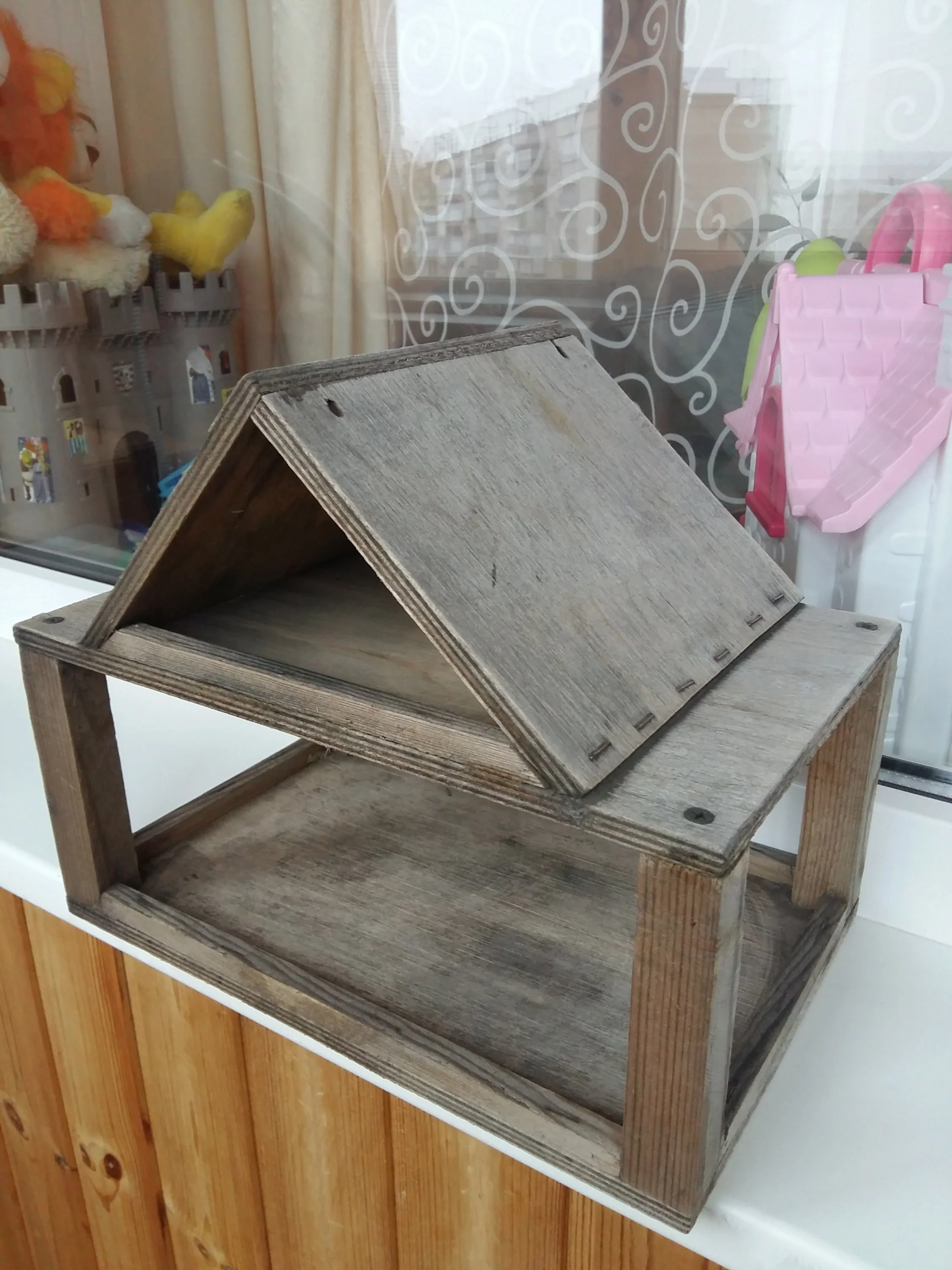 Есть кормушка для птиц, думаю пару лет находившаяся на улице. Нужно отреставрировать и украсить к конкурсу кормух:cool:
