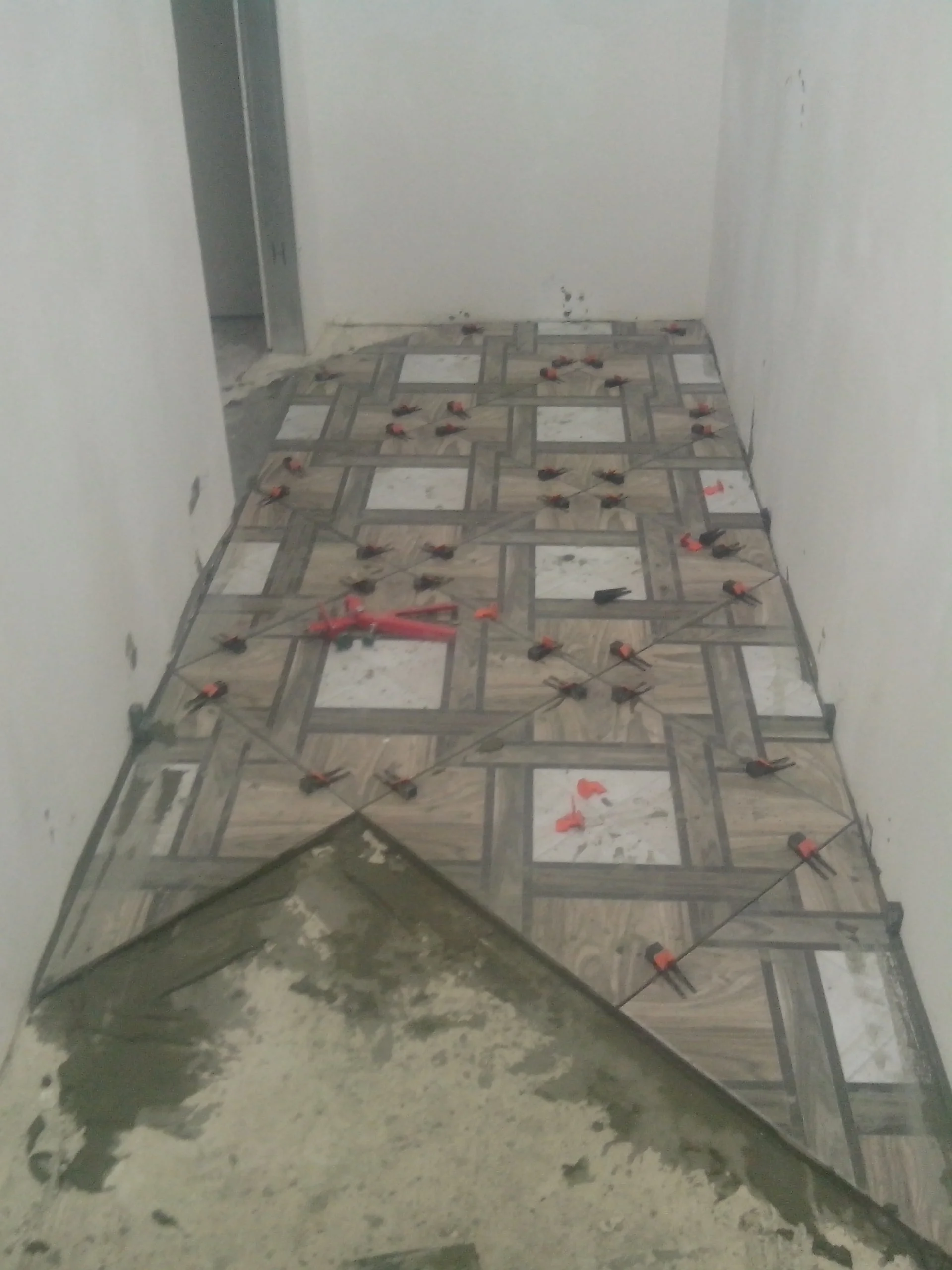 как то получилось с шириной коридора,по диагонали две плиты и две половины,четко...а так хочется сказать,что я все расчитал сам,но нет,чистая случайность (( завтра я на плитке,по кайфу работать,когда получается ))