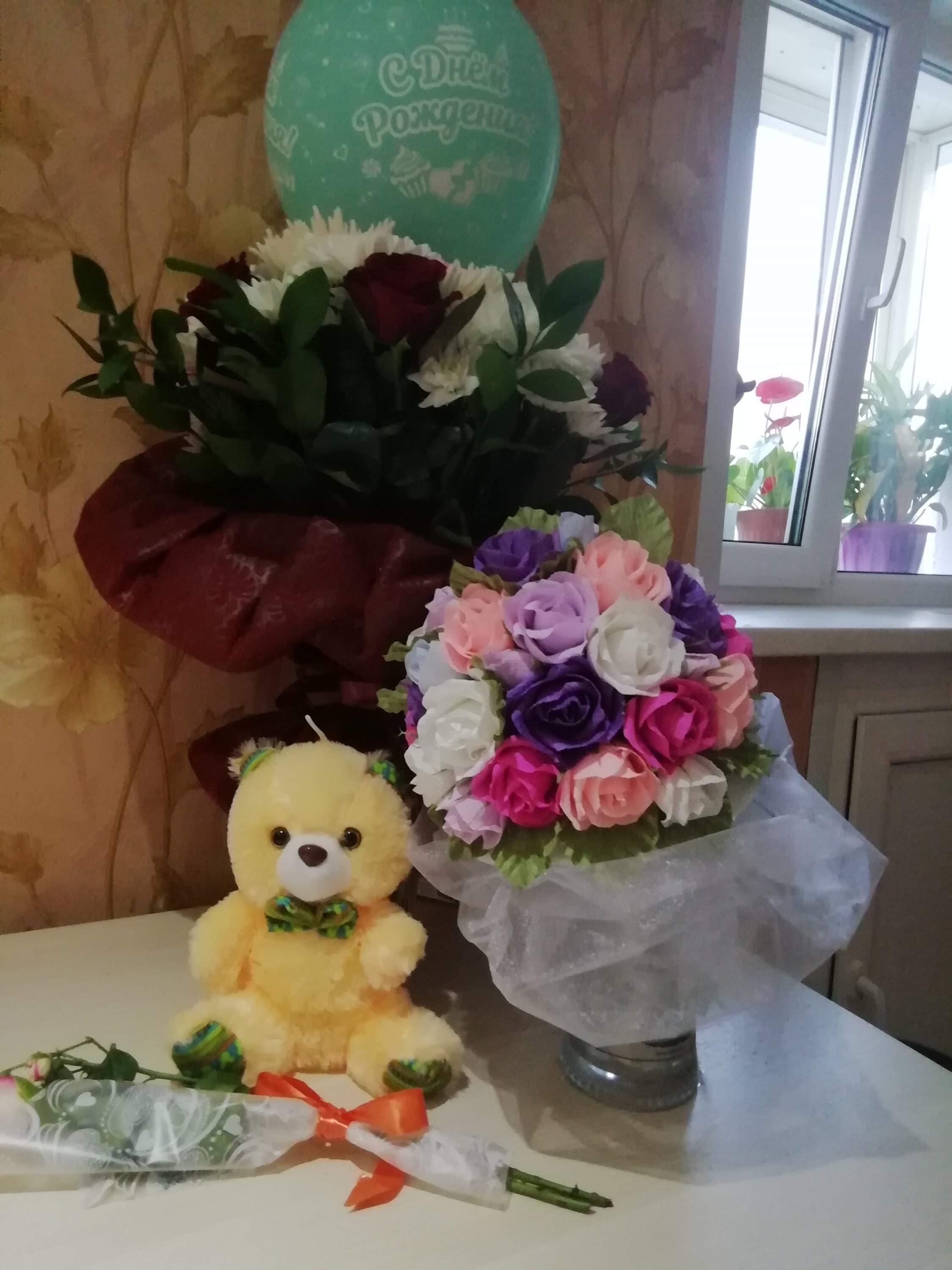 Красивые))) и цветы и Мишка)))Спасибо, столько поздравлений. Очень приятно.