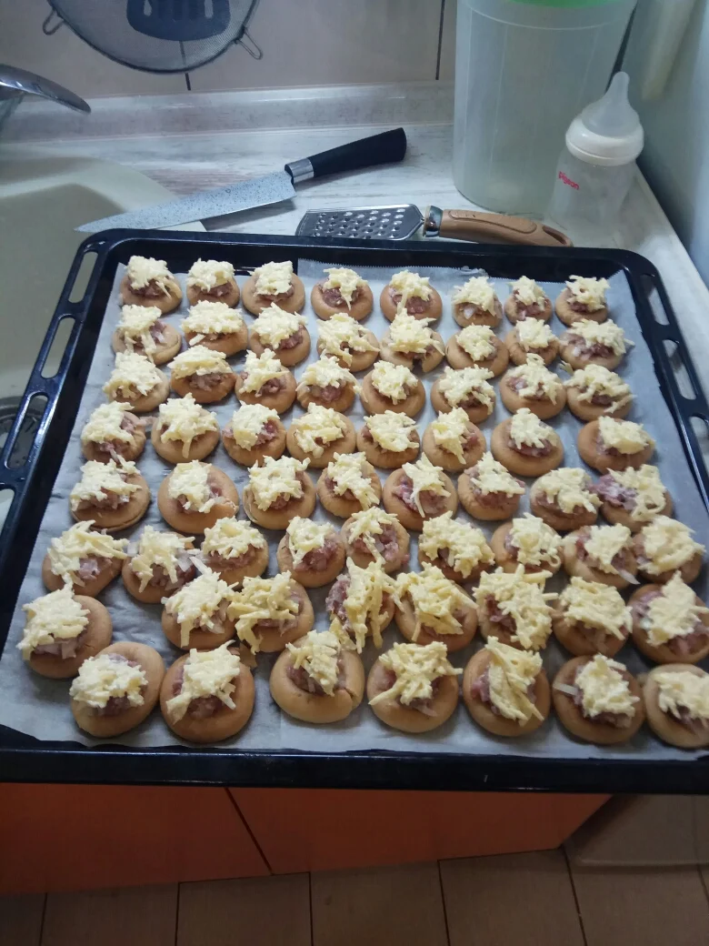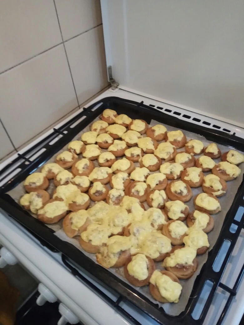 Пошёл простым путём. Закинул в миску сушки, залил водой, покромсал лук, чеснок. Замесил фарш плюс ещё прованские травы.Посмотреть вложение 1002798Посмотреть вложение 1002800Посмотреть вложение 1002801Посмотреть вложение 1002804 Расстелил пергамент на притивне. Разложил сушки, в них фарш. Потом потёр сыр на тёрке, в него чеснок и майонез. Данную смесь разложил сверху на фарш. И в духовку. 200 градусов 30 минут. Фото прилагаю.
