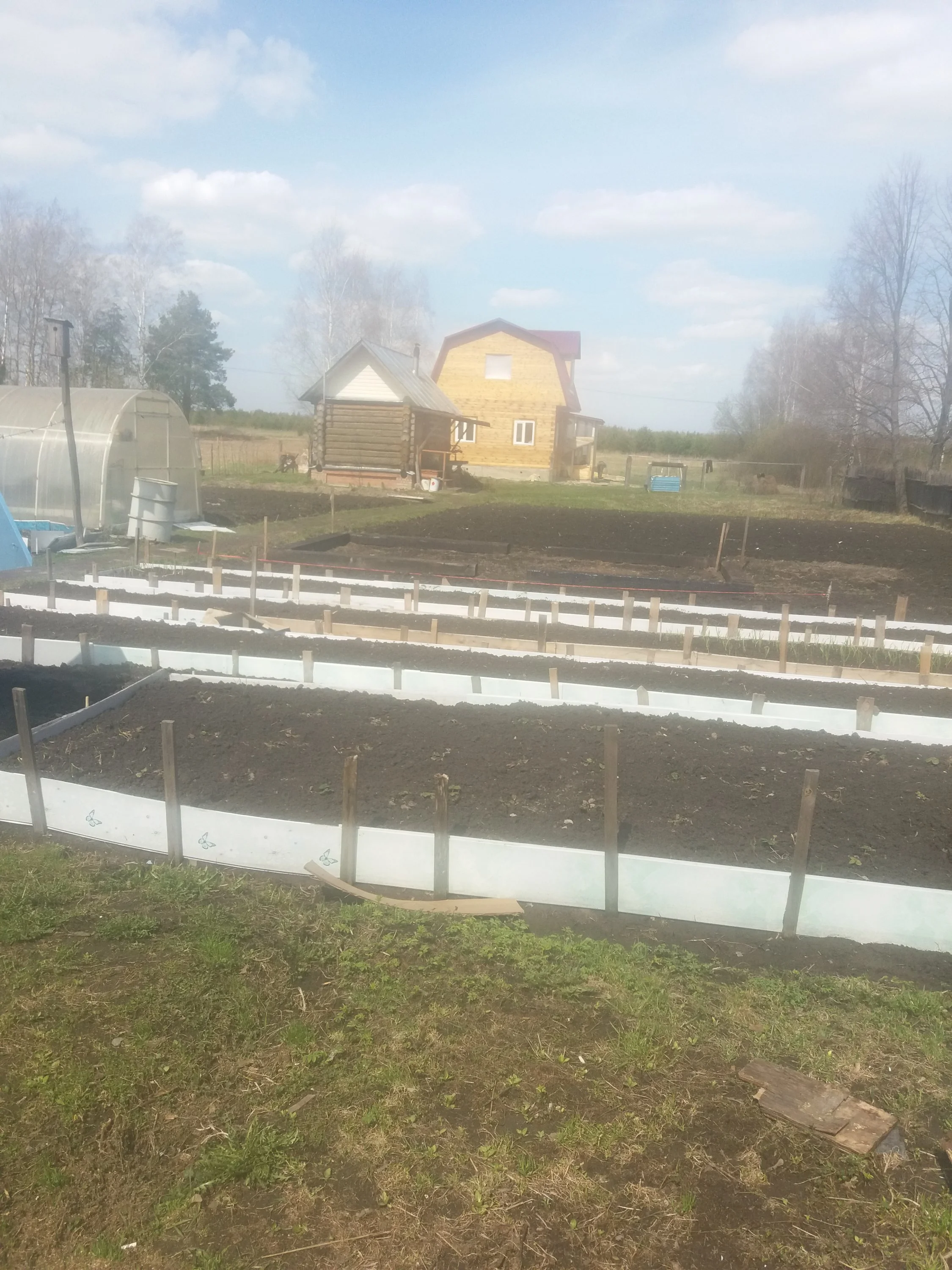Я была у себя в деревне, про нее ранее уже рассказывала. Сейчас у нас полным ходом идет строительство дома, вон он прячется за баней.