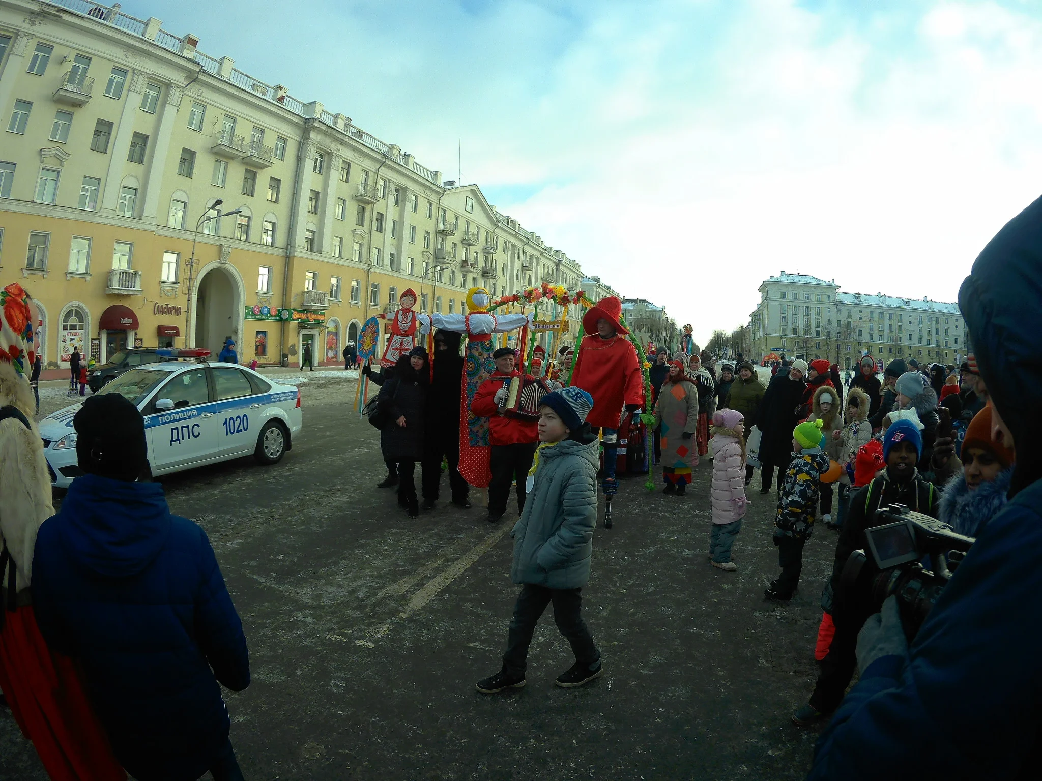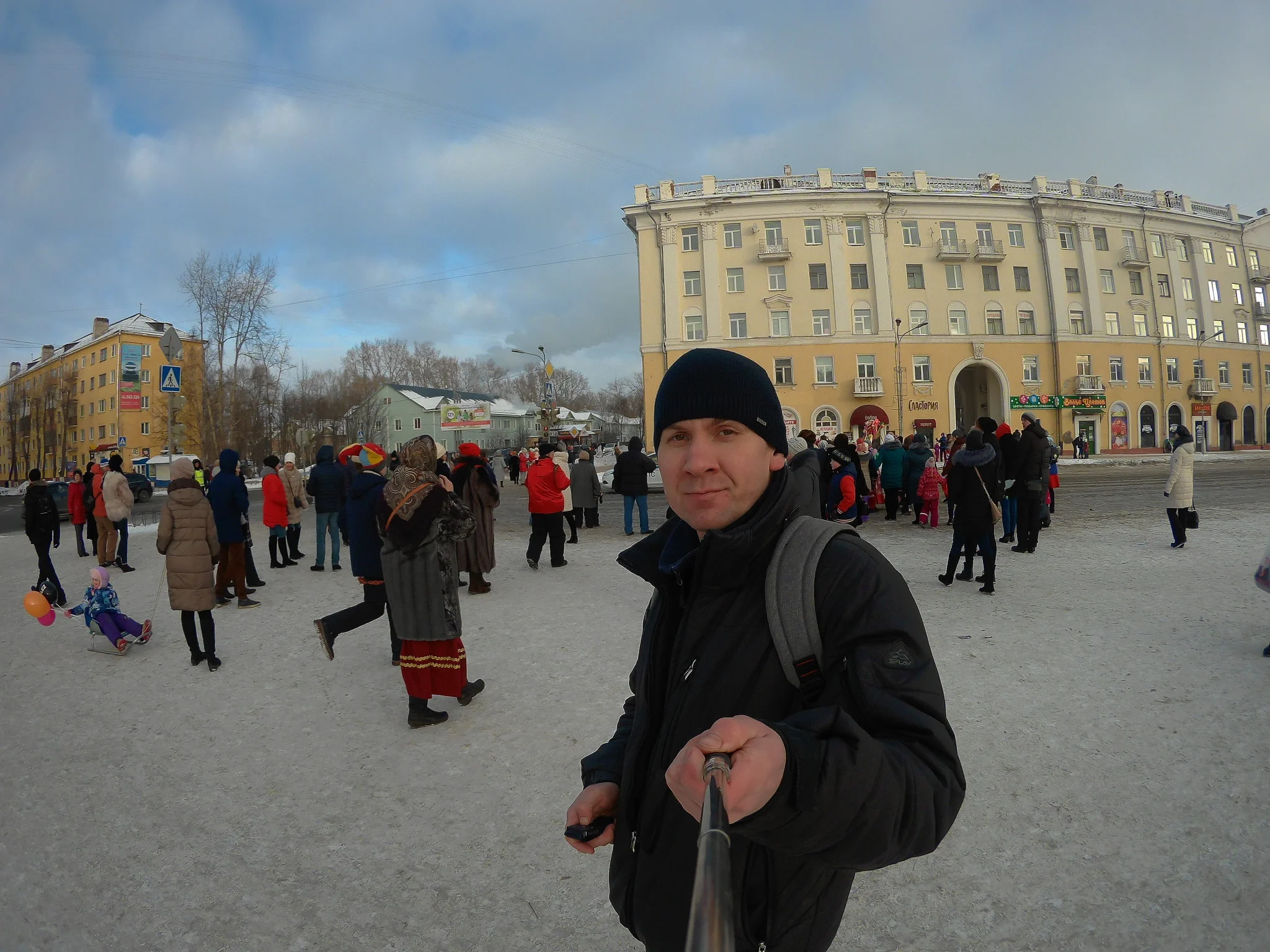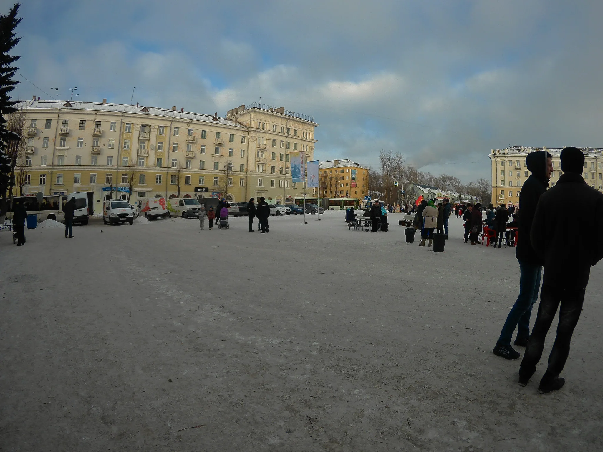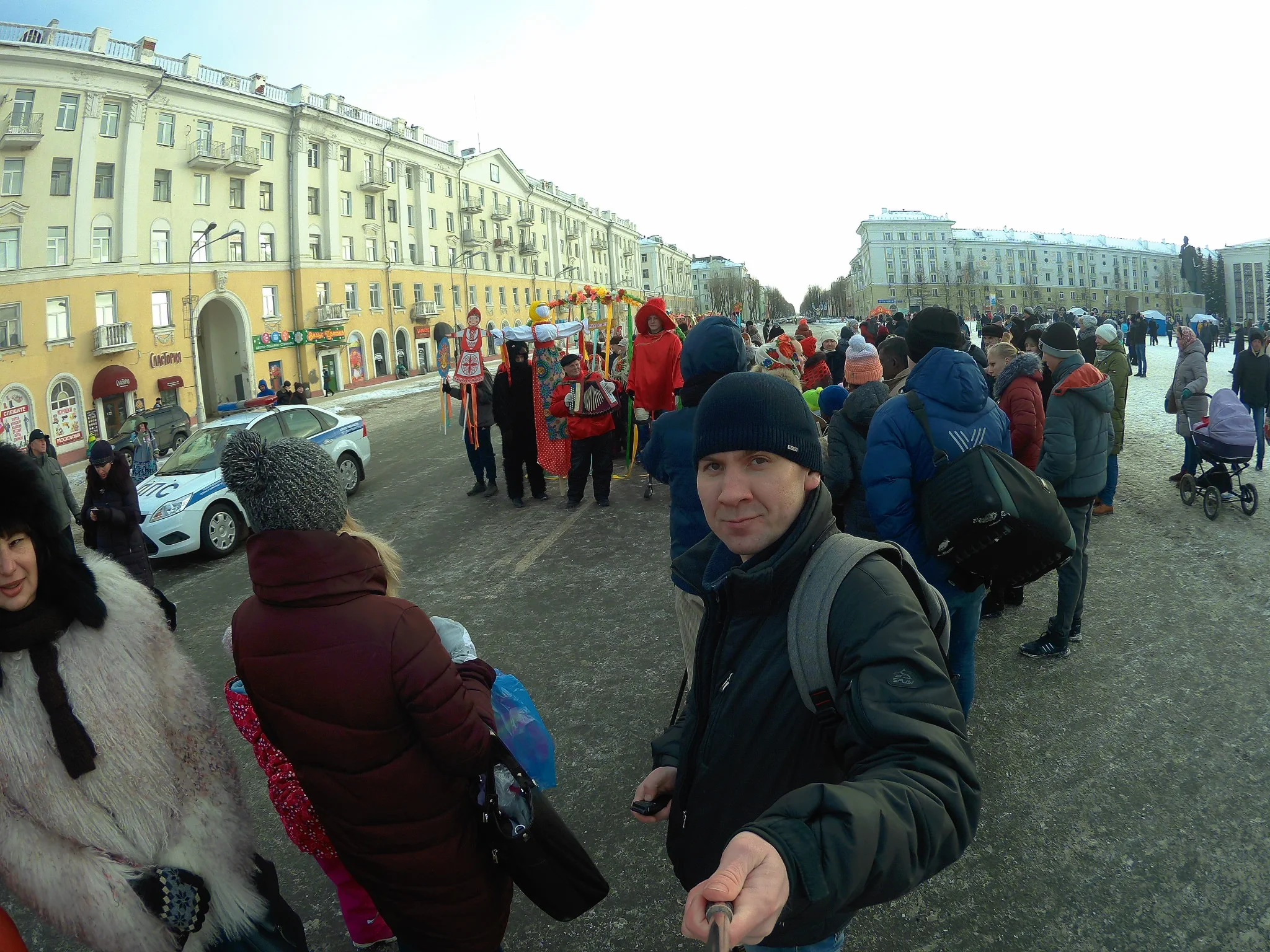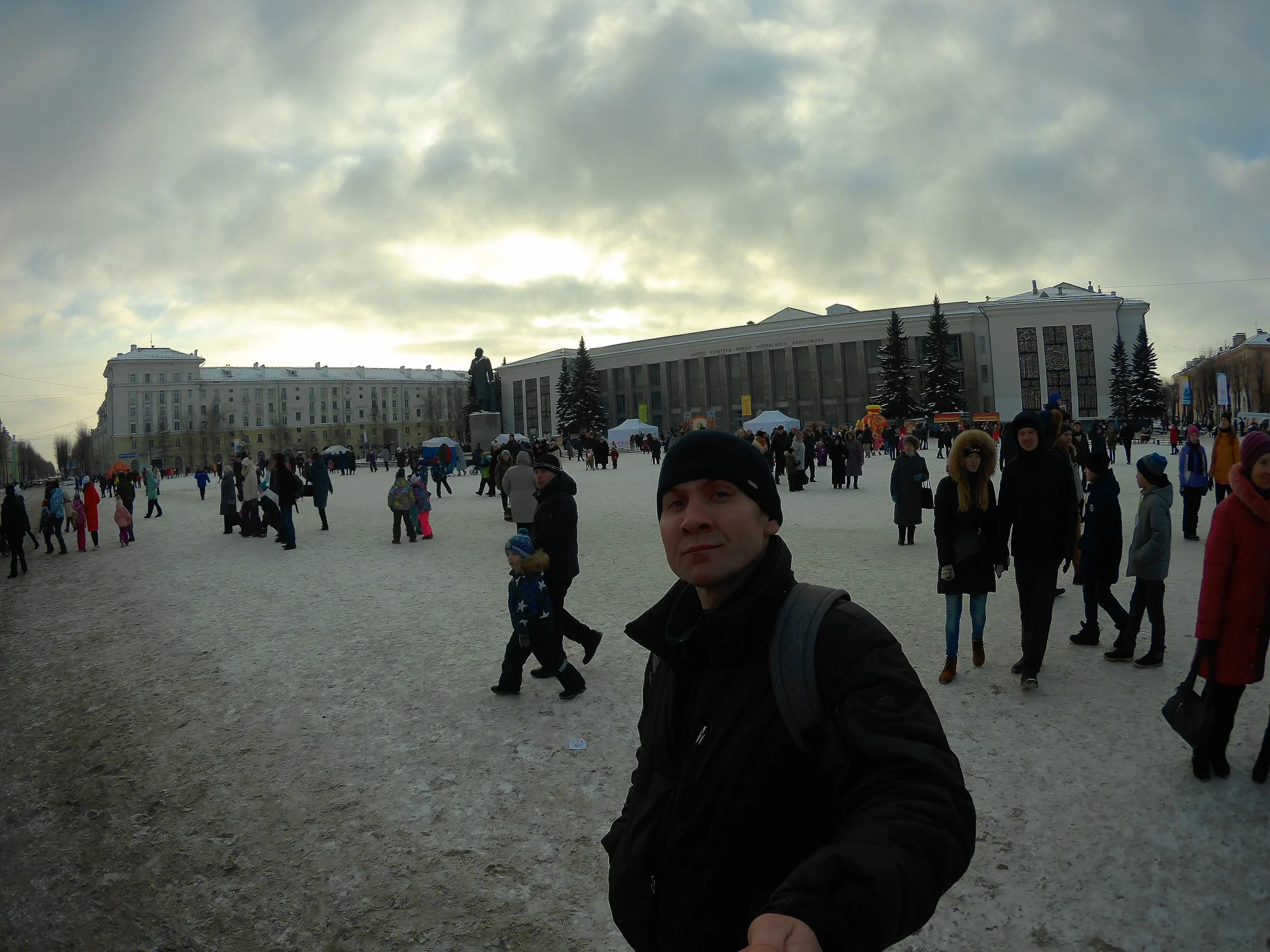 Сходил прогулялся, подышал кислородом. Пока собирался светило яркое весеннее солнышко, но стоило мне выйти на улицу и оно как по волшебству скрылось за тучами. Вот такие движняки сегодня происходили на площади: