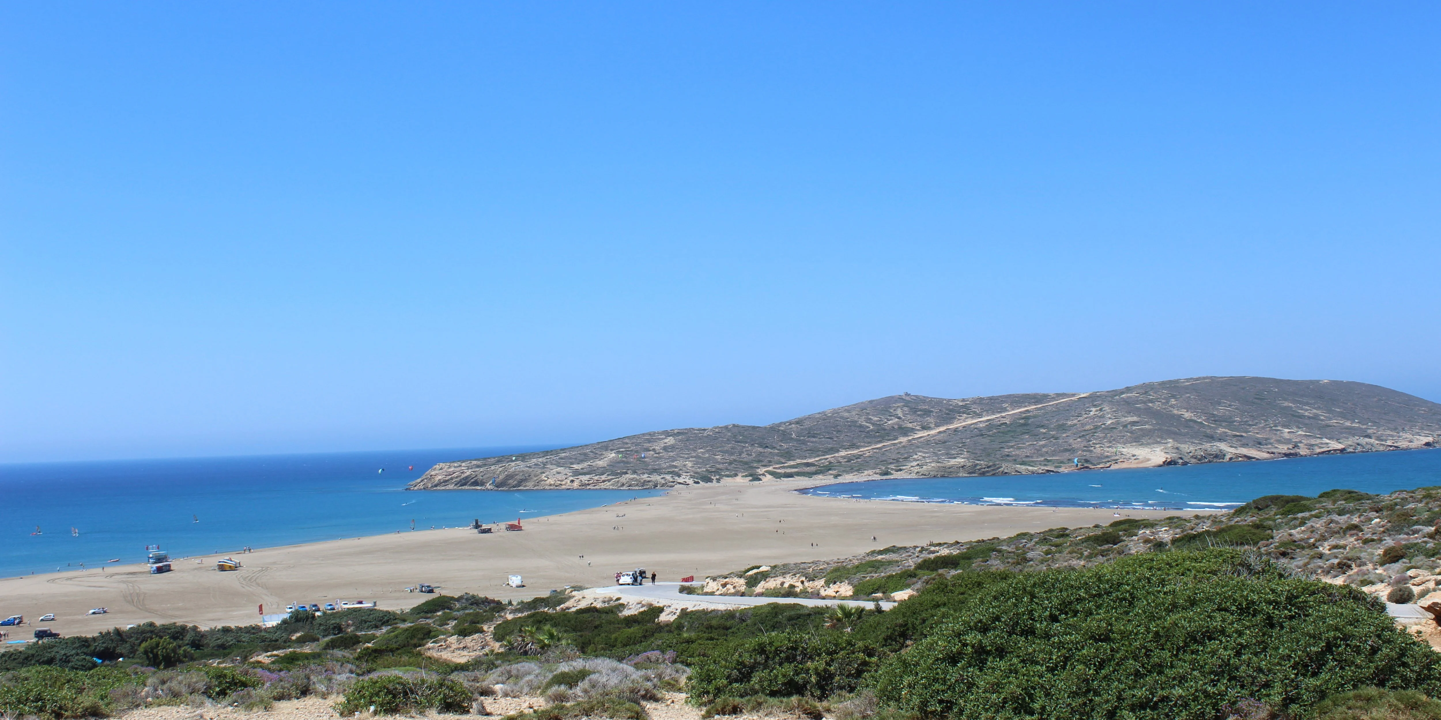 Слева Средиземное, справа Эгейское. Эгейское практически всегда с волнами, там рай для серфингистов...