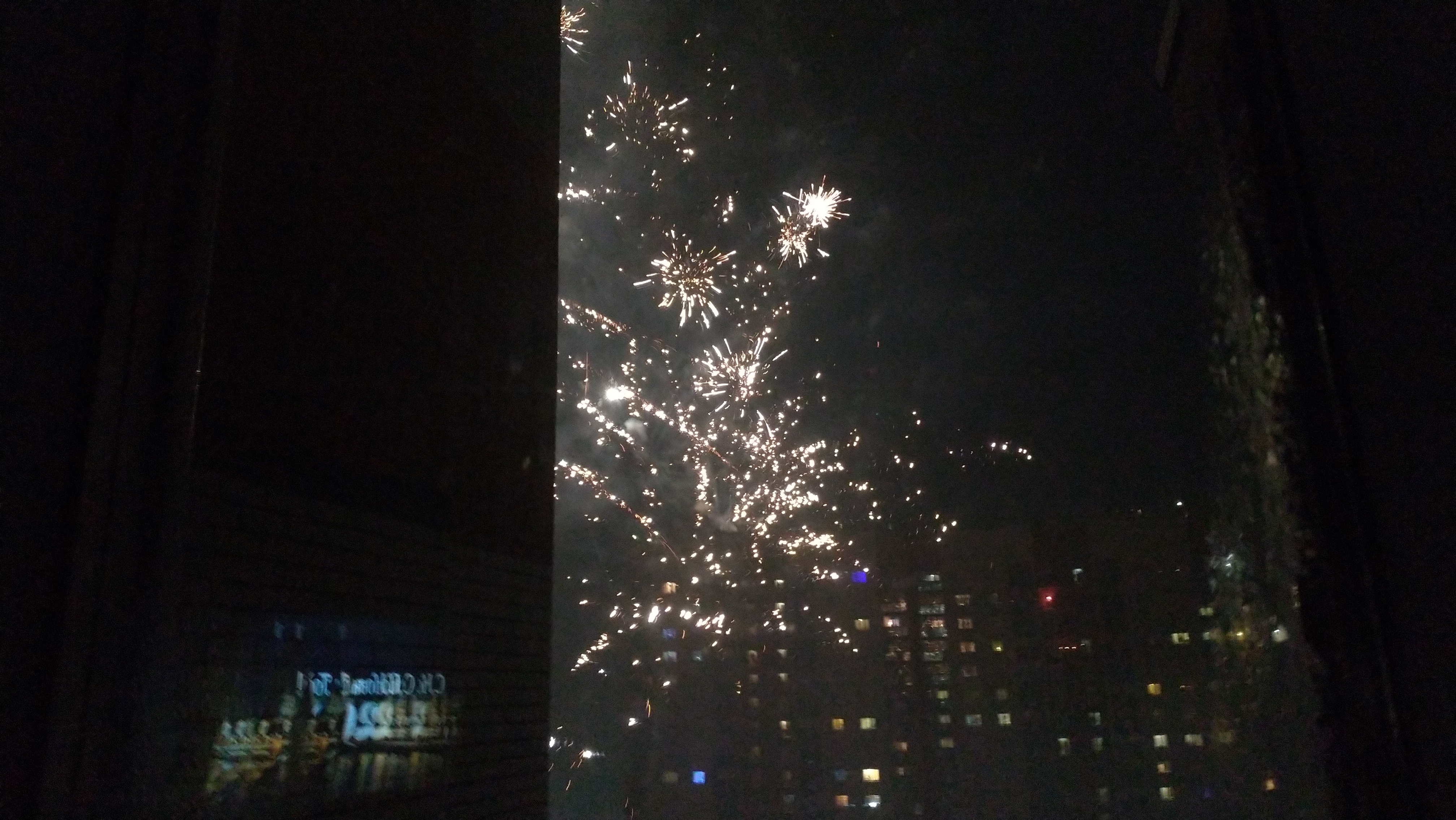 Нет, мы вдвоем. Он вечером работал. Пол одиннадцатого только от отца прибежали. Ему низя, потому как сейчас кататься поедем. А мне раз в год можно, я не за рулем. Сынок прибегал три раза за сегодня, НГ с нами встретил. Что очень приятно. Но он тоже за рулем, убежал давно.