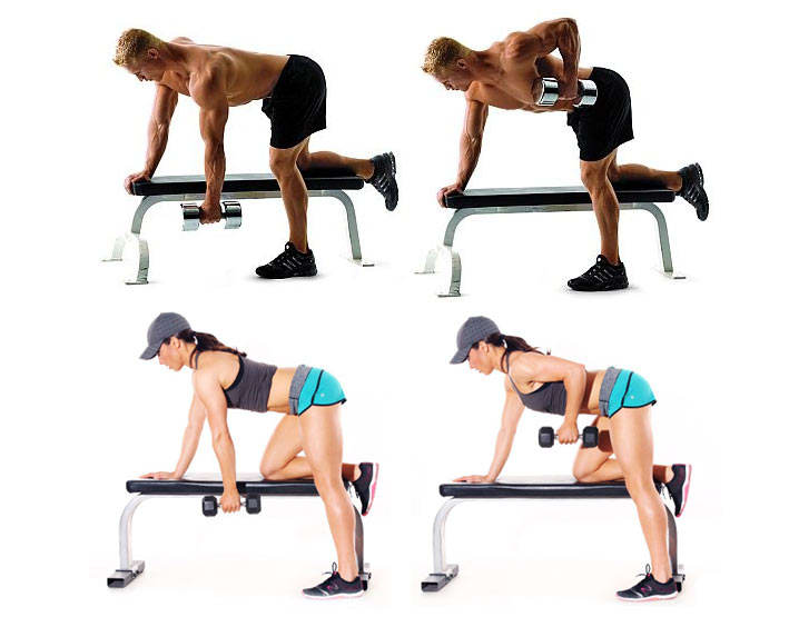 Упражнение 4. Тяга гантели от скамьи в наклоне. Тут конечно важна жёсткая скамья, не обязательно деревянная прям, но на пуховой перине лучше не делать) если нет гантели, возьмите бутылку с водой, килограмм риса, масло растительное) начнем с килограмма. Опять же, нужно смотреть со стороны, правильную постановку руки. Если домочадцы отсутствует или домочадец - кот, то лучше запишите себя на видео как делаете пару раз. Поймёте где ошибка. Выполняем 10 раз