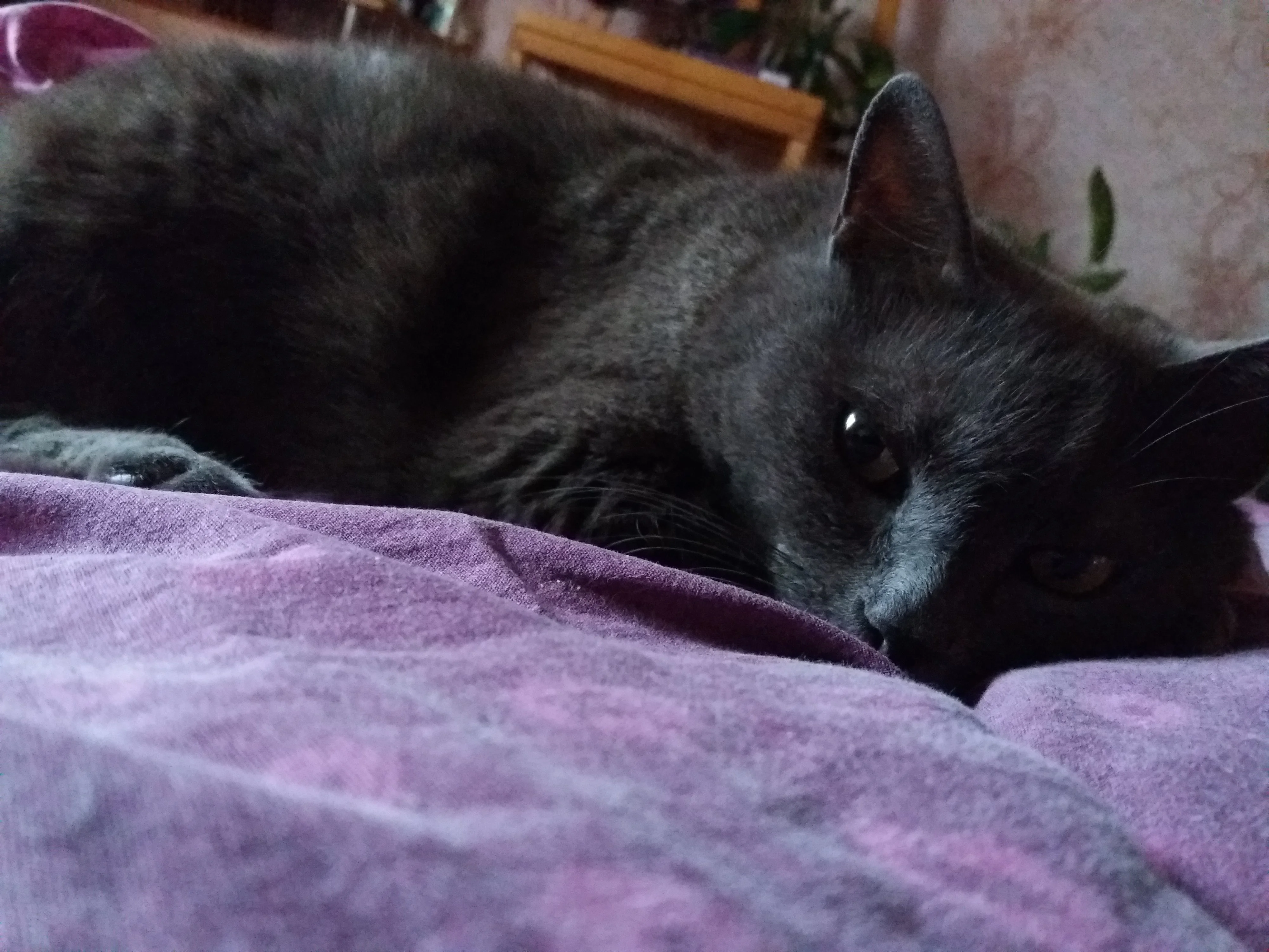 Моя охотится на пылесос, это надо видеть ))) Он гудит, она за ним с огромными глазами смотрит... во кстати... с такими..