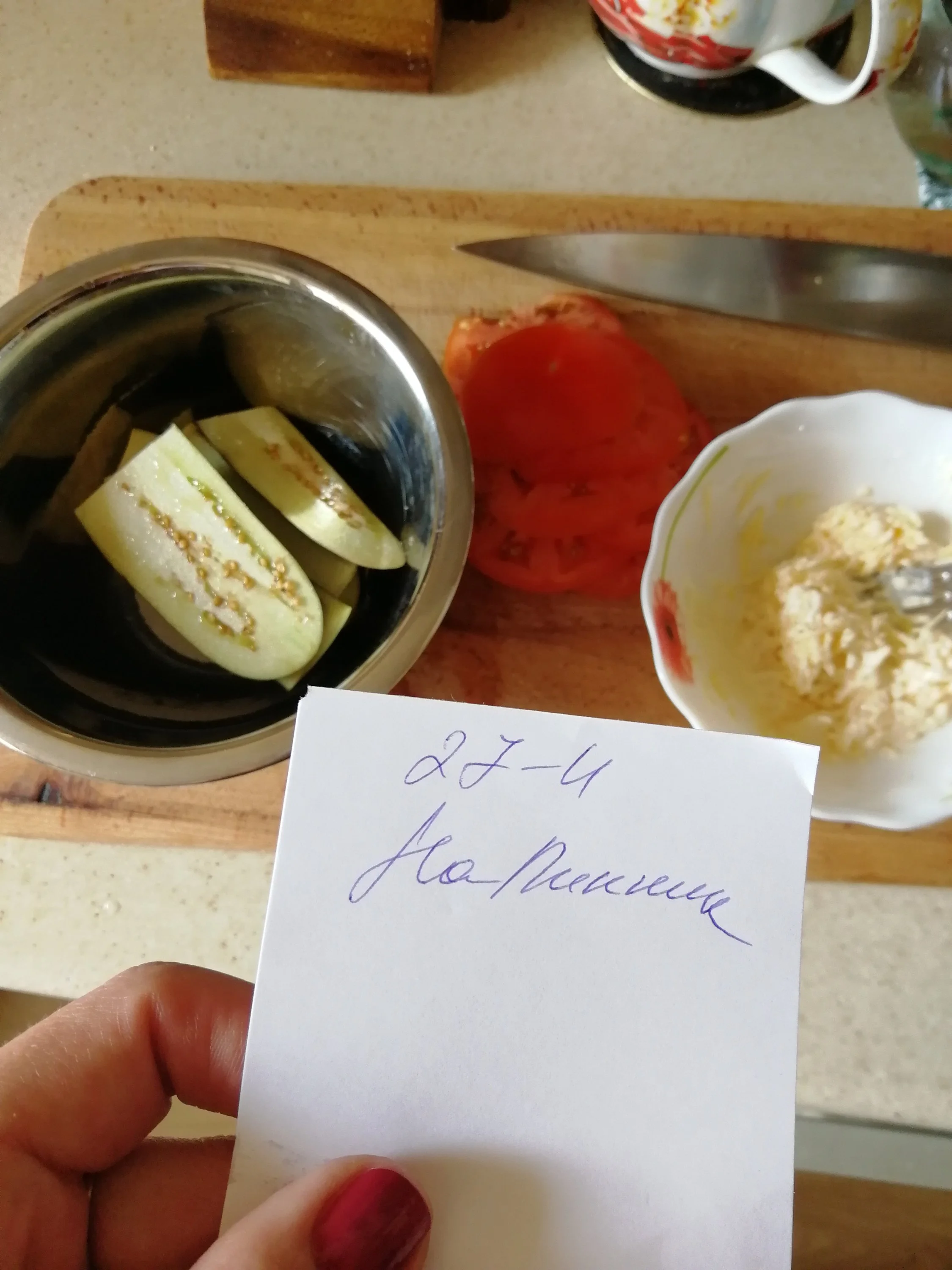 Баклажан моем, режем, солим и даем постоять 30 минут чтобы ушла горечь. Делаем майонез - яйцо, соль, сахар, растительное масло, уксус (горчица по вкусу) взбиваем в погружном блендере. Трем сыр, смешиваем с майонезом. Томат режем пластинами.
