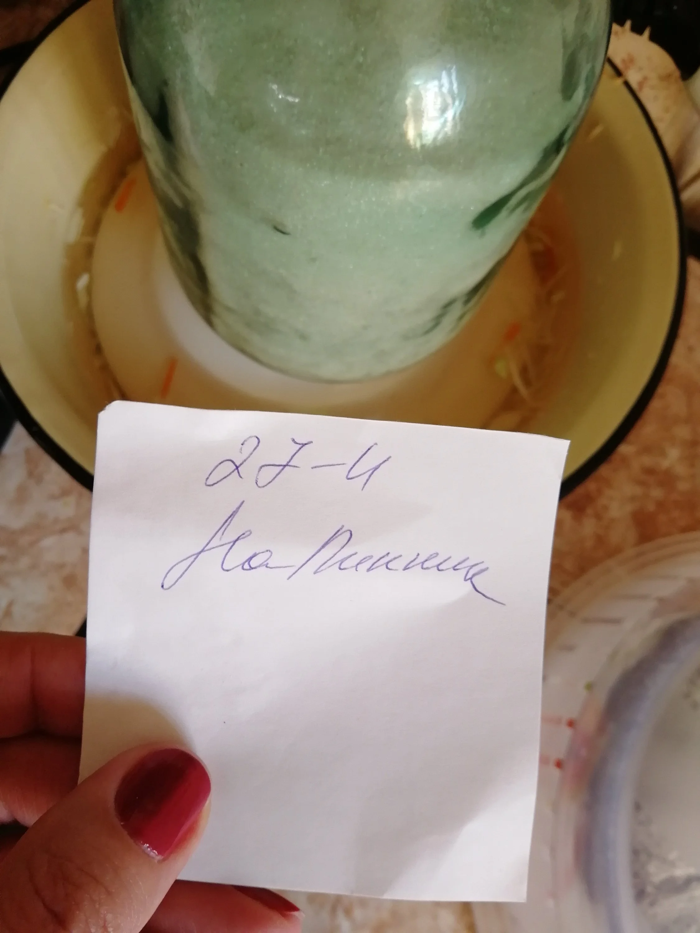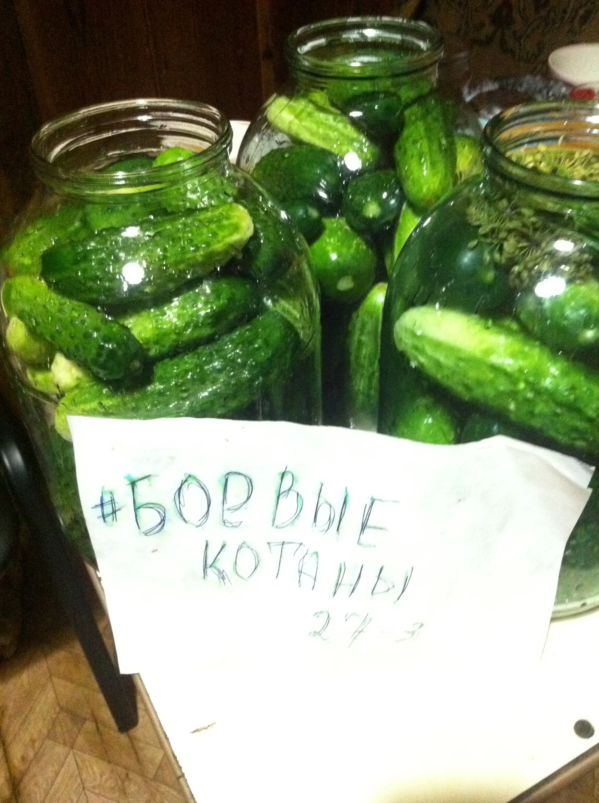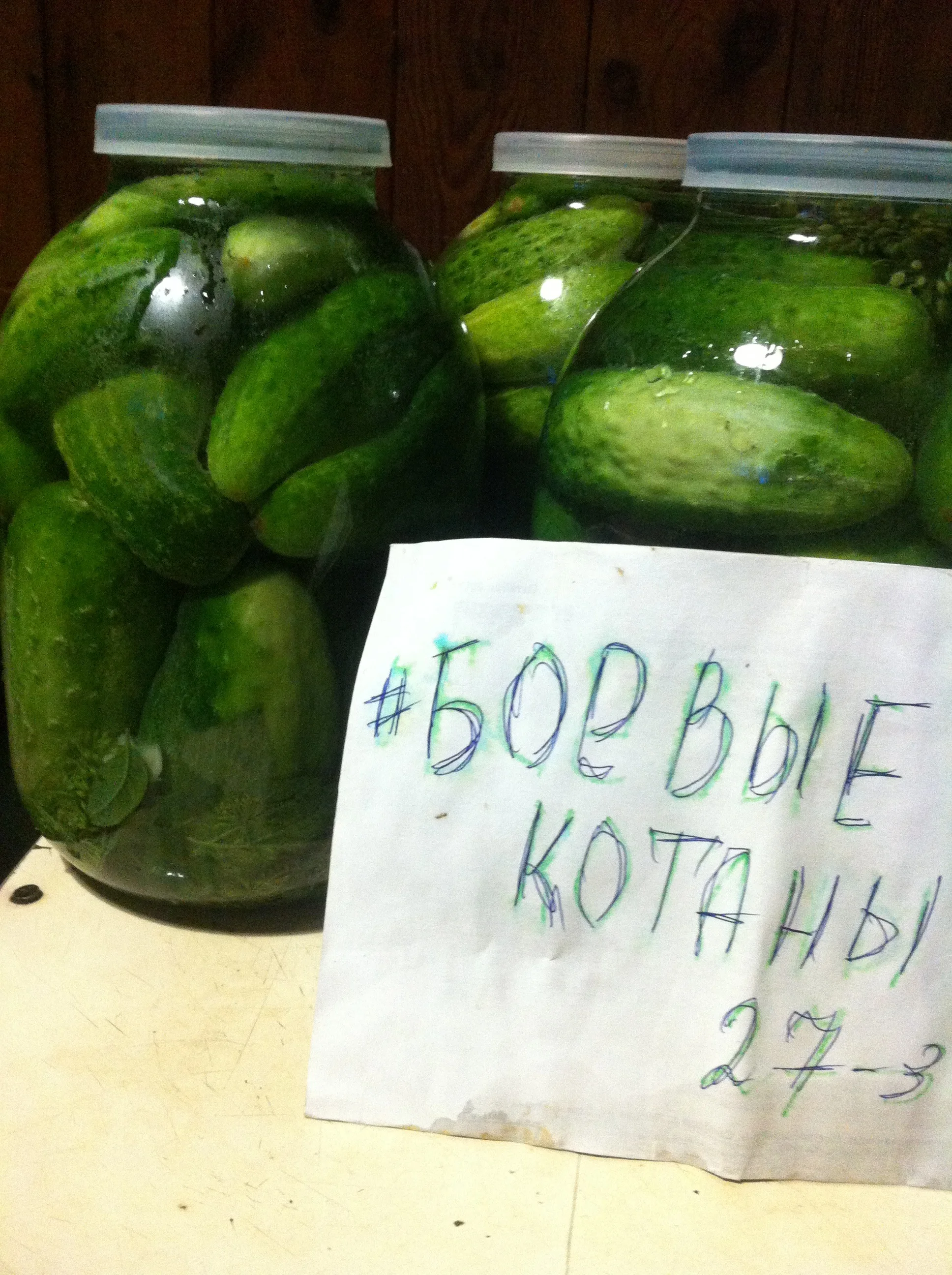 3. добавляем в банку 3 ст.ложки соли (без горки), заливаем 1-3 ст. ложки водки, до краев заливаем холодной водой, закупориваем пластмассовой крышкой (прогретой в кипятке), выносим в погреб.