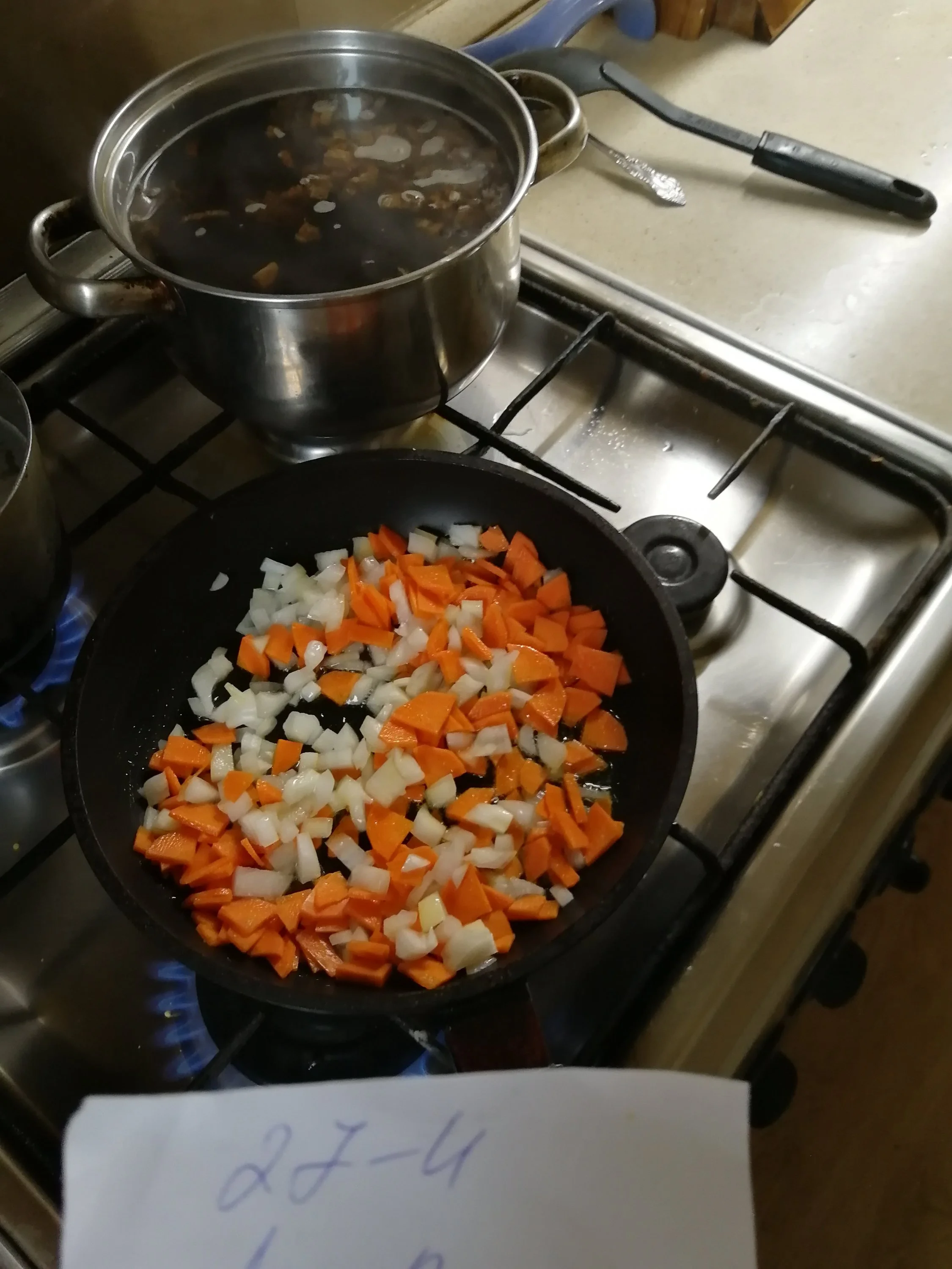 Слегка обжариваю на сковороде. Складываю в сотейник.