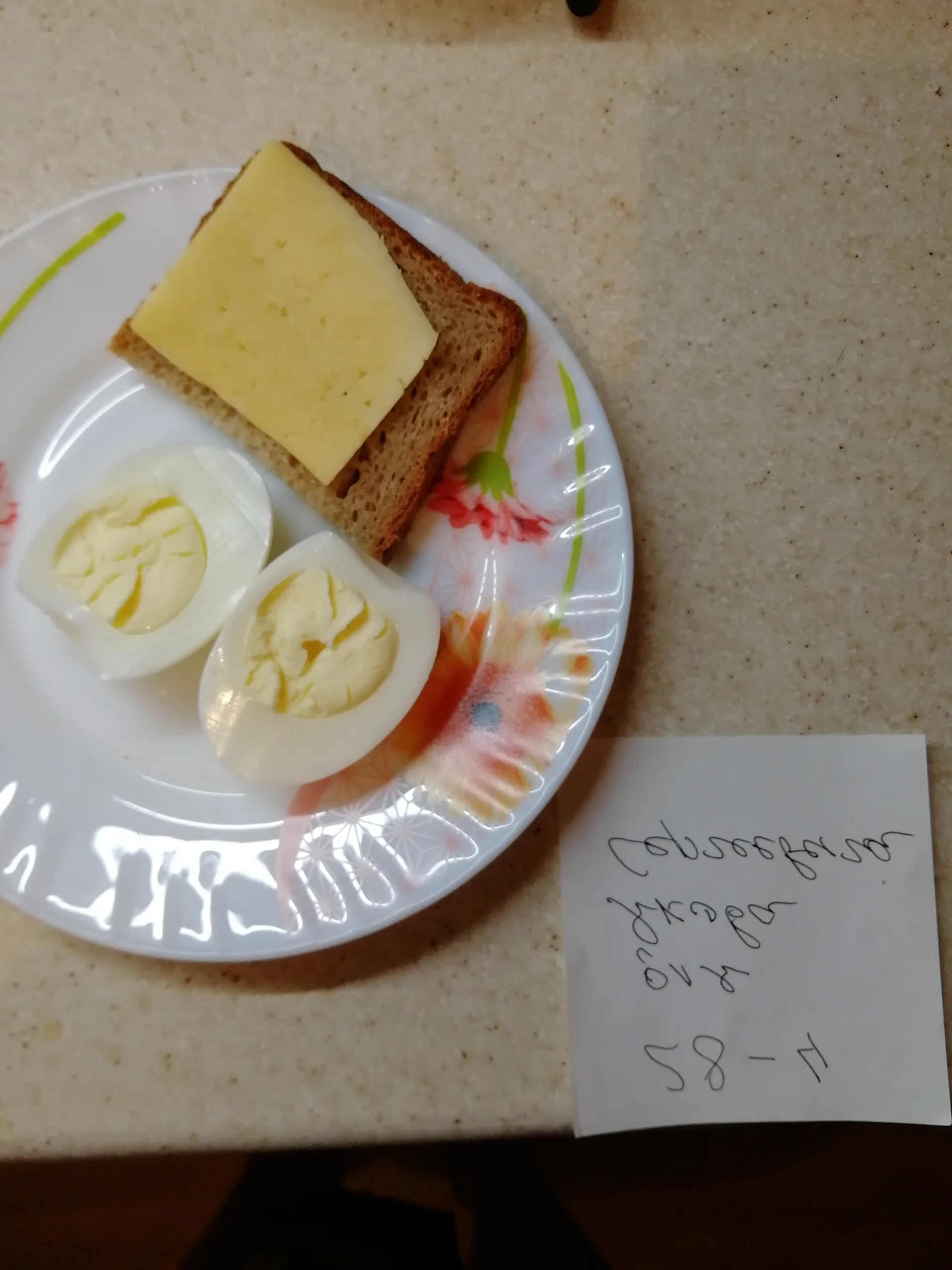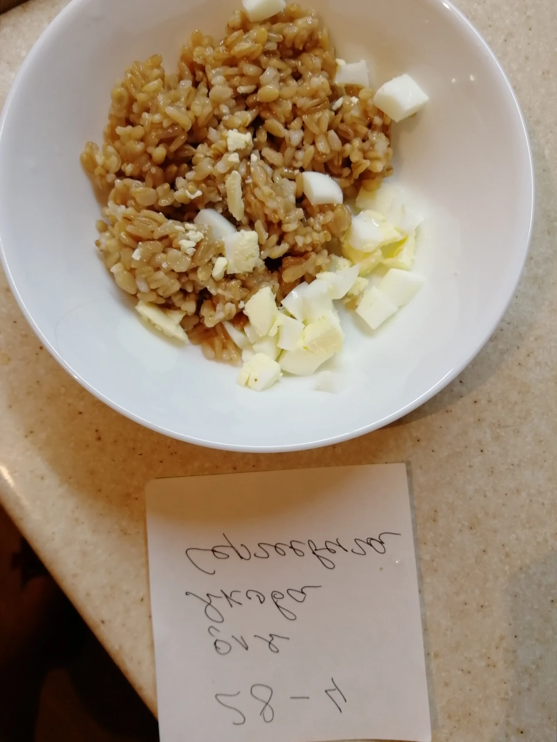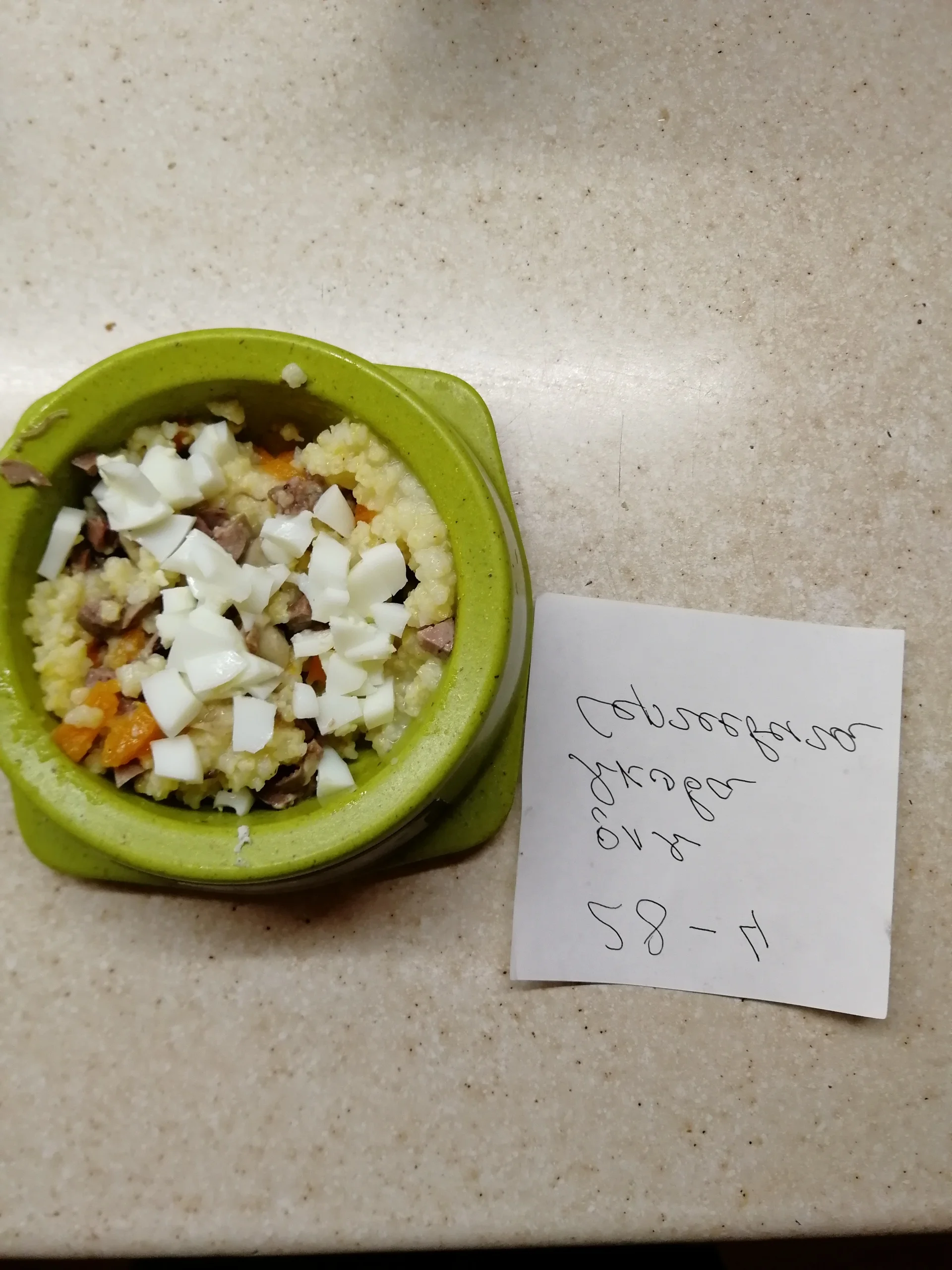 Выложила салат, но забыла перевернуть табличку... Пока делала себе омлет, муж салат сожрал. Решила временно его не убивать, а выложить вылизанную им тарелку с правильной бумажкой