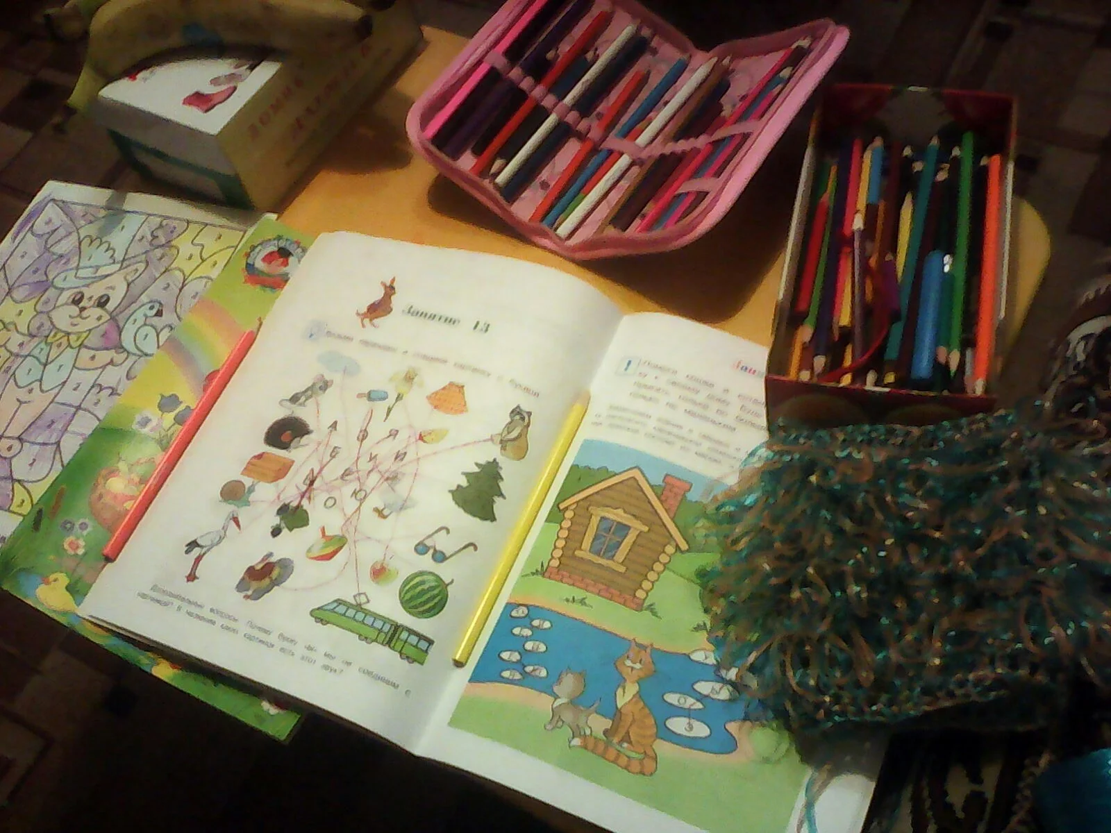 2. Два занятия по грамоте, раскраска по номерам+ребус+ два рядочка мочалки(пользуясь случаем)