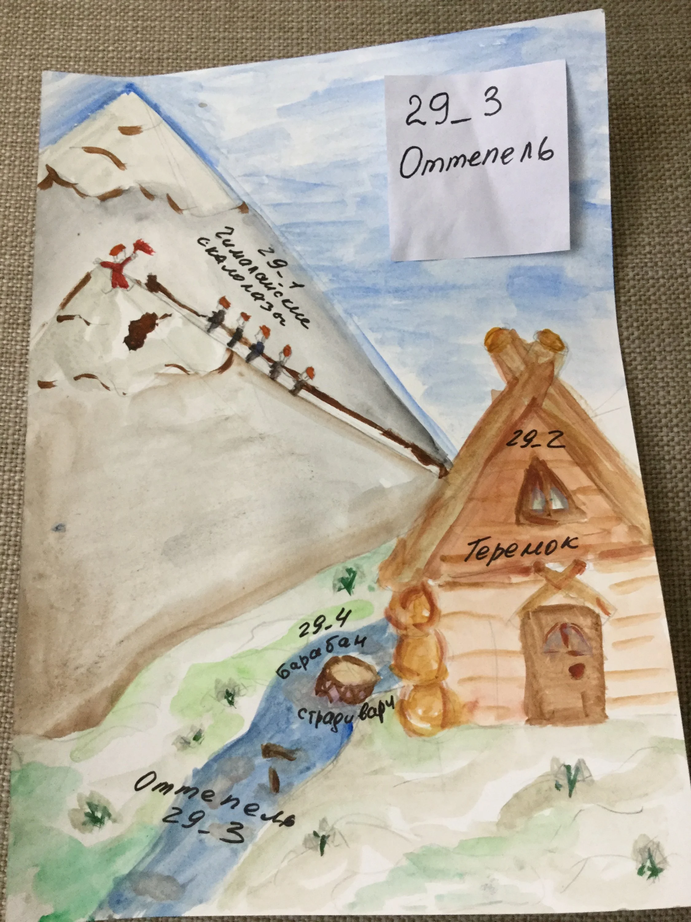 Бумага - белая, выполнено акварелью