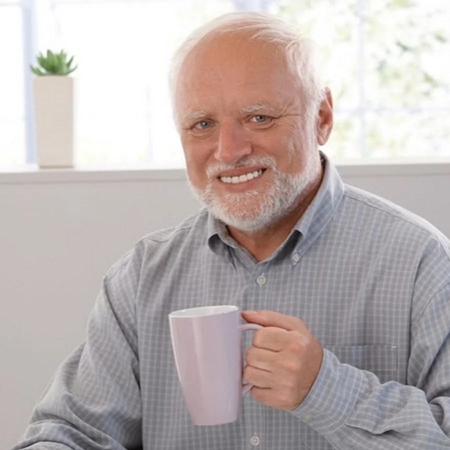 Katerina_Kaz написал(а): Дед с фотостока вот, например: Посмотреть вложение 855247 Нажмите для раскрытия... Да, это известный персонаж - Дед Гарольд или Гарольд, скрывающий боль.