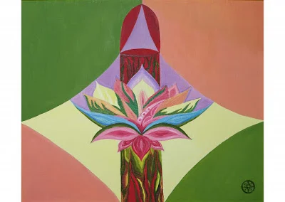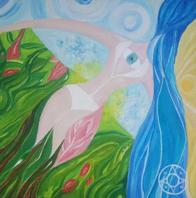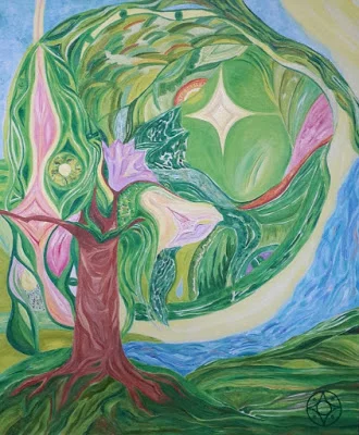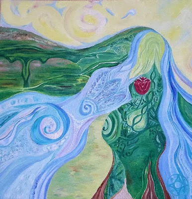 Картина отражает связь с божественной женской природой, природой самой ЖИЗНИ, витальностью (спираль ДНК), через соединение с Землей. Земля напитывает своими дарами, наполняет огненной энергией, увлажняет и наполняет своим дыханием.