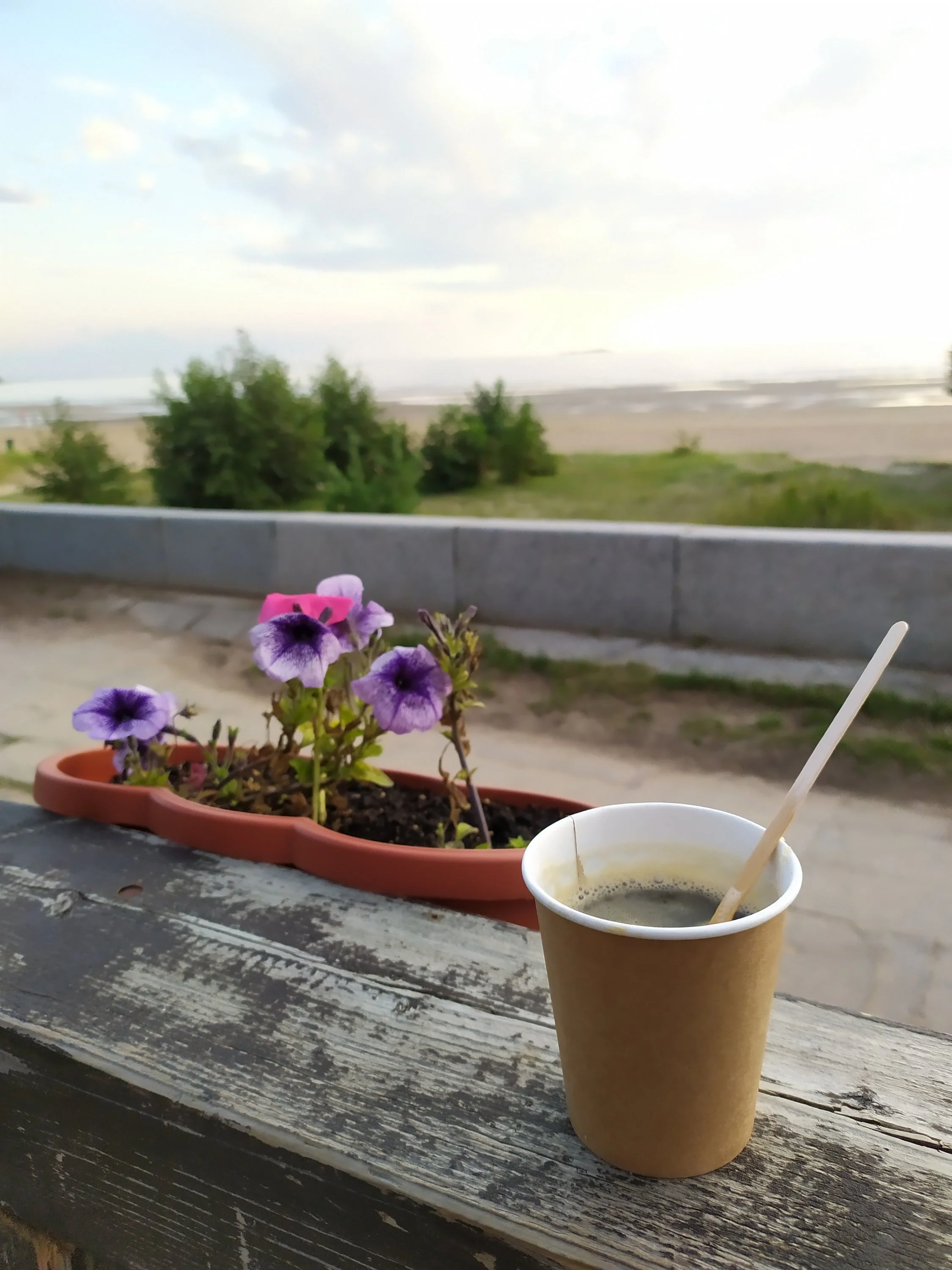 Да, кафе на берегу залива. Сегодня солнце и опять поехал. На купался, замерз. Зашел кофе попить.завтра уже дожди.