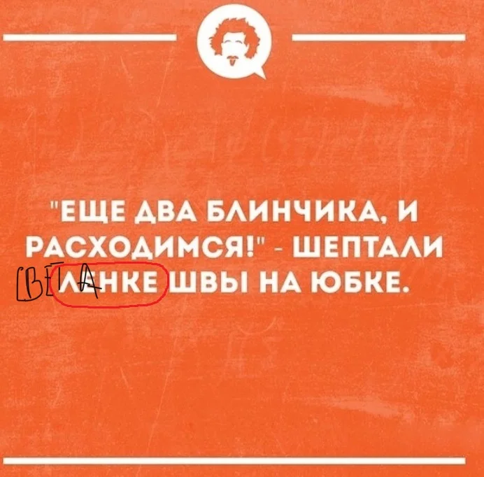 DmitriS написал(а): Это не тебе. Ты же не Ленка. А вот наша @Елена Давыдова часто блинчики делает... Ленчик, как там швы? Нажмите для раскрытия... Делать не значит есть))