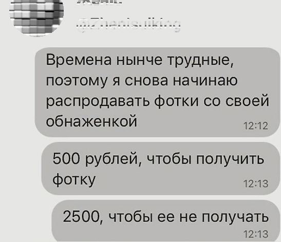 Kisa написал(а): Это, возможно, плата за то, чтобы не получать голые фотки в личку) @Экста в болтологии тему подняла интересную, что можно так зарабатывать ? Нажмите для раскрытия... Я к такому никак не была готова