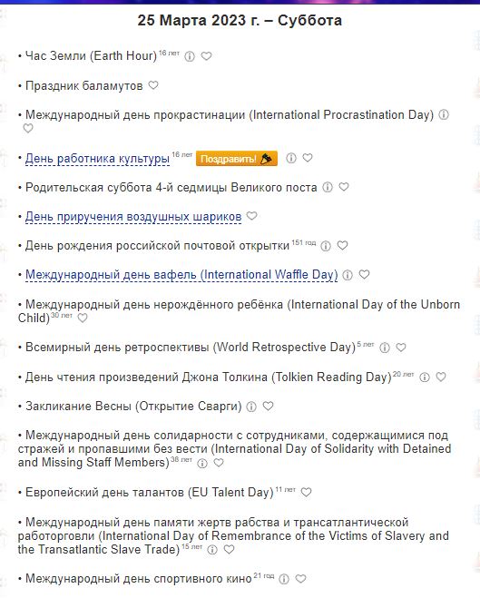 Ойген V.I.P Сообщения 48.578 Реакции 95.938 Не курю с 12.11.2022 Лет курения 26 25 Мар 2023 #8.850 Такое ощущение, что на том сайте сами эти дни выдумывают, чтобы интереснее было