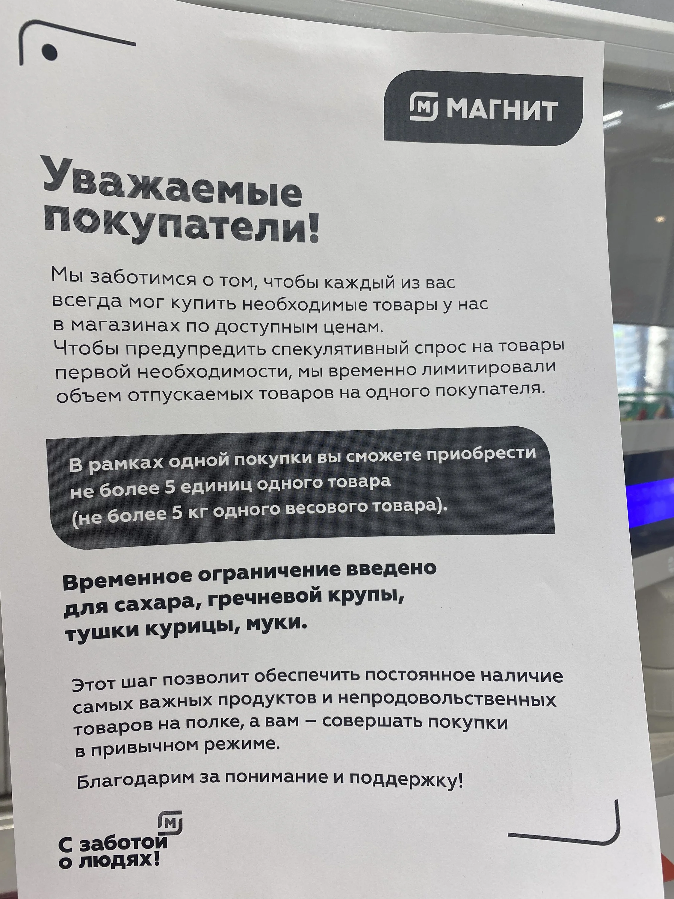 Ага, люди сами больные. Вчера наблюдала картину : забегает в магаз парочка, сходу продавцам: у вас сахар есть? И нагребают полную тележку:facepalm:В магните больше 5 кг сахара/ соли/ муки и пяти литров масла в руки не дают))