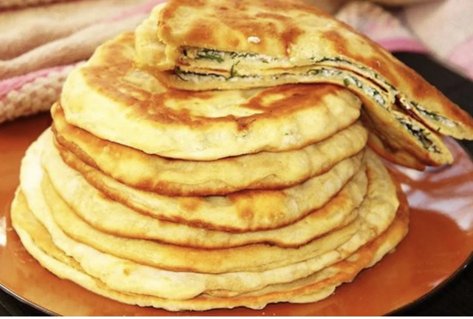 Сыр — бесподобный ингредиент для питательных блюд без мяса. Особенно если сделать из него лепешки и не пожалеть зелени. Замешиваем эластичное тесто из 650 г муки, 250 мл кефира, ½ ч. л. соды и щепотки соли. Накрываем его полотенцем и даем отдохнуть 30 минут. Тем временем натираем 300 г сулугуни, шинкуем пучок кинзы и зеленого лука. Из теста раскатываем 6 круглых лепешек, на половину каждой кладем сыр с зеленью, защепляем края и снова раскатываем тонкие лепешки. Обжариваем их и тут же подаем к столу. Это блюдо выручит всегда, если нужно сообразить нечто сытное и вкусное на скорую руку.