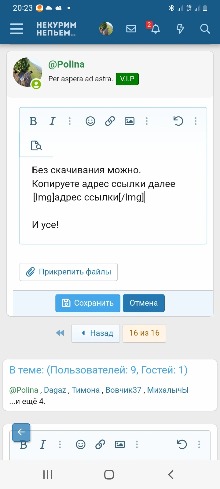 ИГОС ⚔Осколокъ ИмпѢріи© Сообщения 12.134 Реакции 26.960 Дневник Читать »» Метод Авторский Непьем: »»» 27 Июн 2023 #315 @Polina написал(а): Без скачивания можно. Копируете адрес ссылки далее Посмотреть вложение 1838105 И усе! Нажмите для раскрытия... Через вставку картинок прошло.