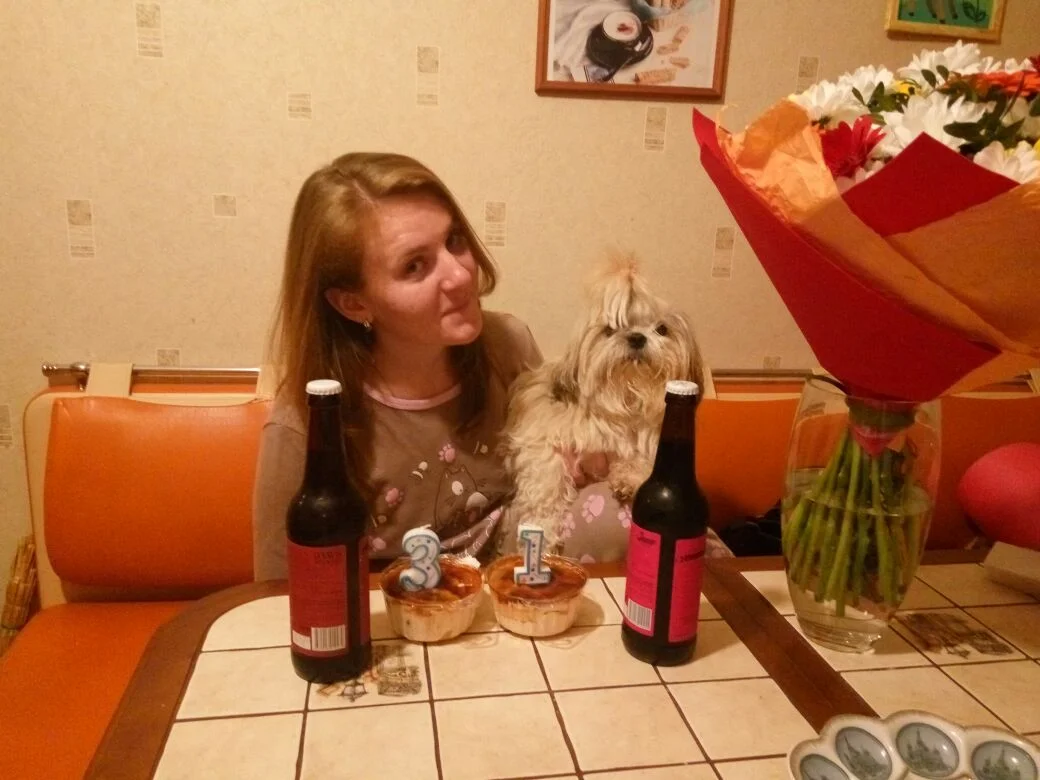 Feona, спасибо за комплимент. Мне самой эта фотка нравится, потому что я там самая счастливая за целый день. Собака ши-тцу, она на полтора кг больше чем йорк. Спасибо!!!!Привет, красотка! Ты такая няшка оказывается)) И собачка тебе идет. Это йорк? Светленькая такая, м-м-м-м симпапуля. Представляю какая она смешная))