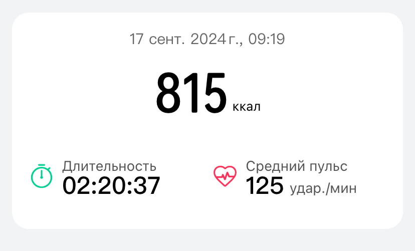 И вот запись с браслета о потраченных калориях