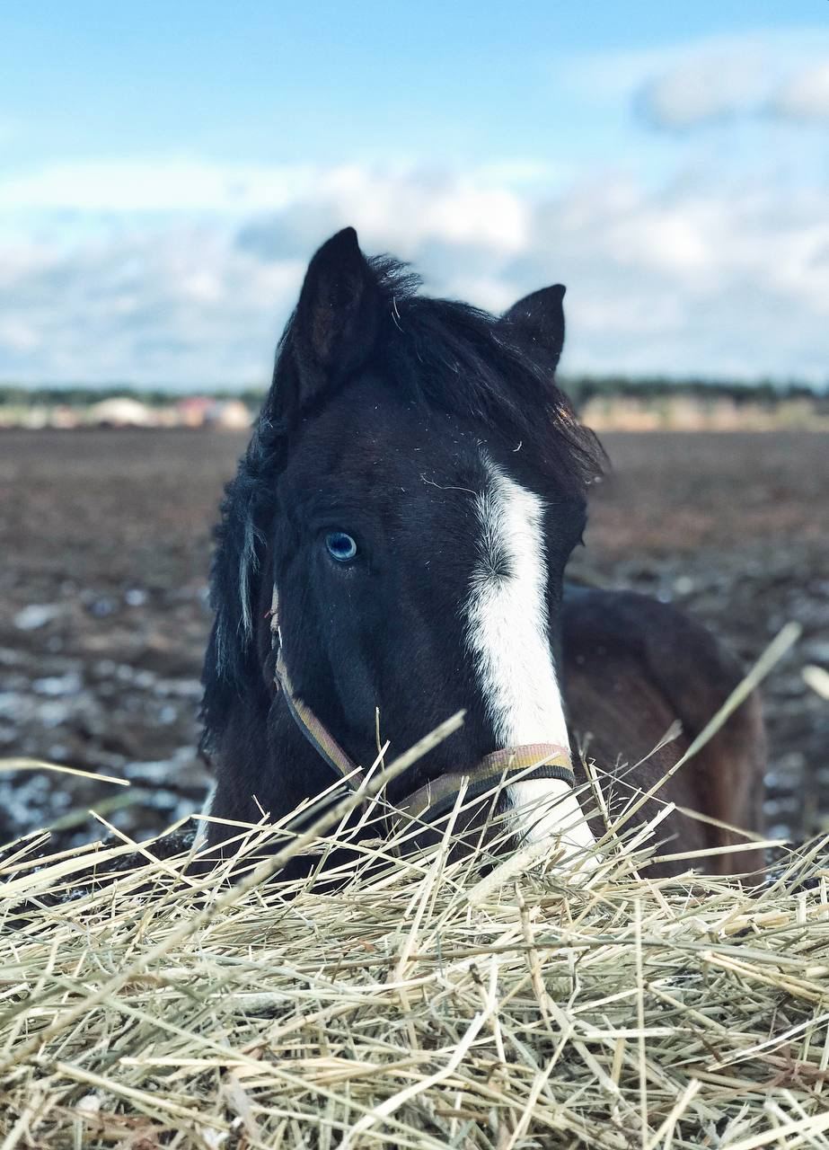 Второго коня зовут Гуцул. Домашняя кличка Гучи. За него красоту. У него голубые глаза. Ща них и был куплен) он небольшого роста около 130 в холке. Но он то в табуне себя в обиду не даст! У него такой ворчливый характер. Не очень любит работать. А вот просто побегать горазд)) такой немного хулиган. Но детишек ответственно катает. Но когда дело касается спорта - тут он готов как можно быстрее перепрыгивать все препятствия которые видит на пути и не факт, что всадник сам хотел именно это препятствие прыгать)) в управлении в этот момент сложен, но если научиться, то все медальки твои)